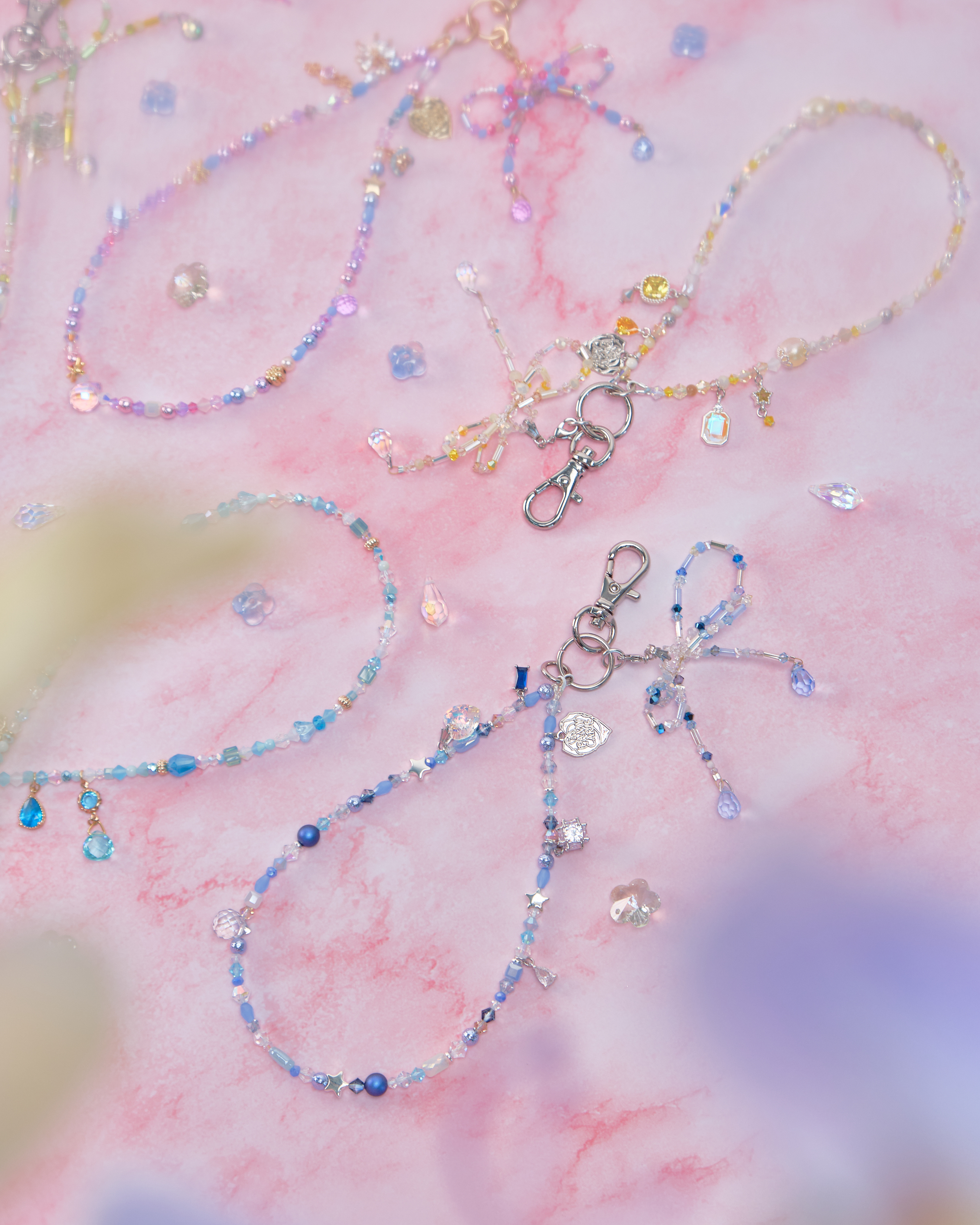 11672 Crystal Phone Strap with Detachable Beaded Ribbon Pendant