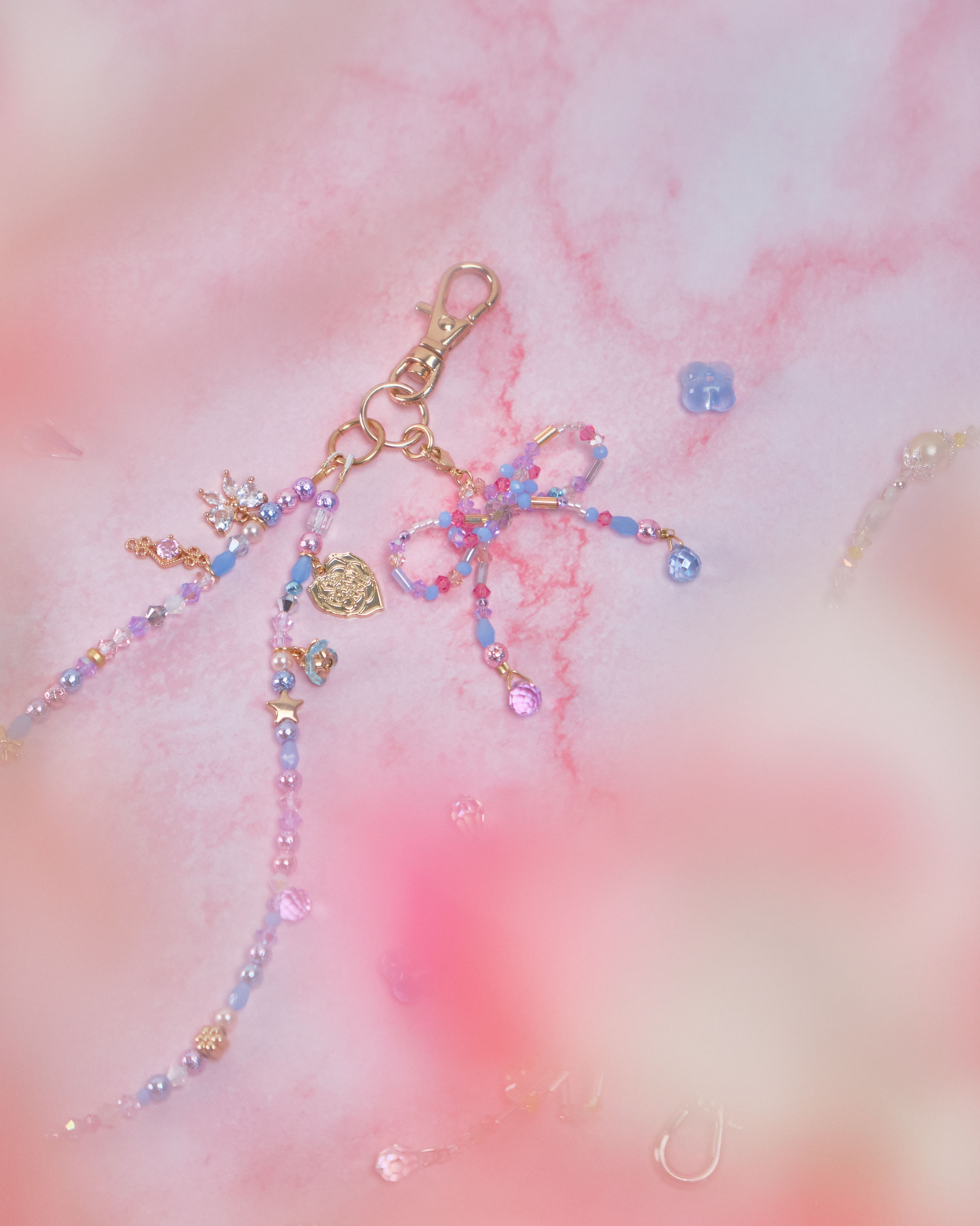 11673 Crystal Phone Strap with Detachable Beaded Ribbon Pendant