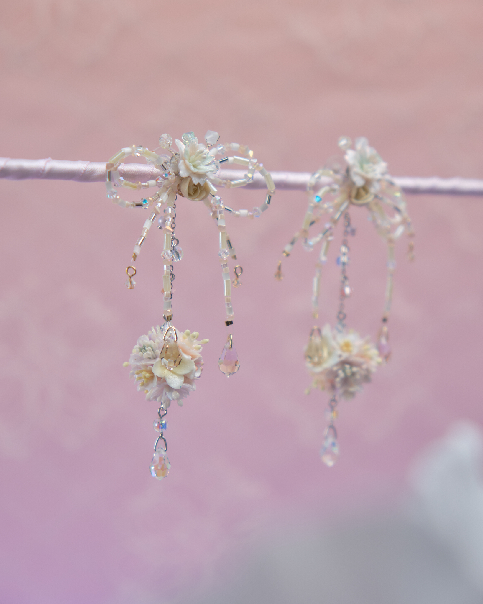 11818 Beaded Ribbon Bouquet S925 2-Way Earrings