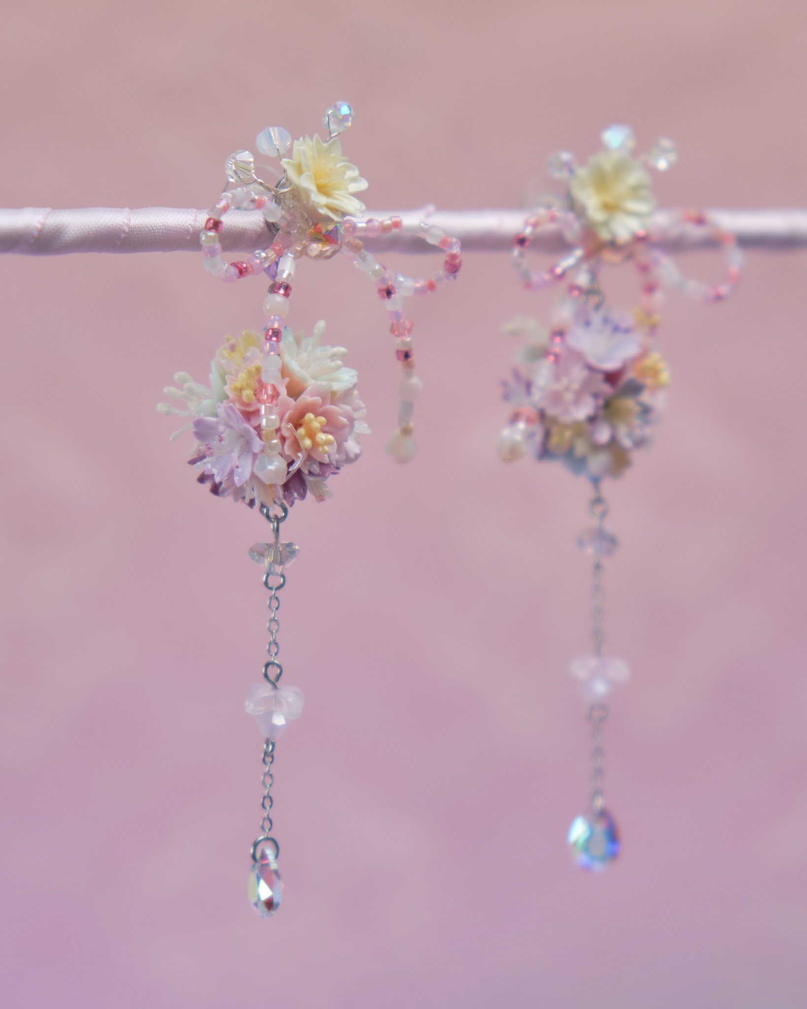 11819 Beaded Ribbon Bouquet S925 2-Way Earrings