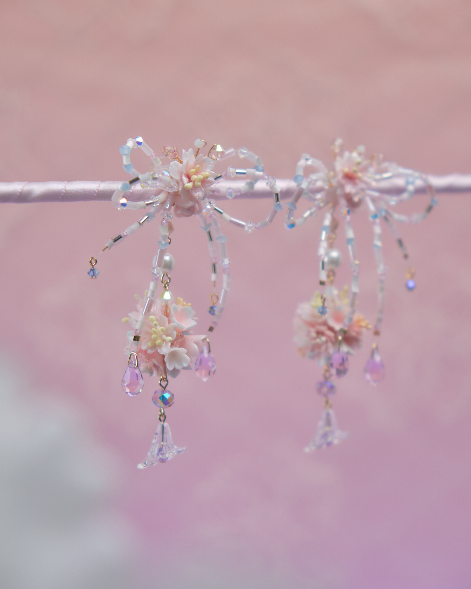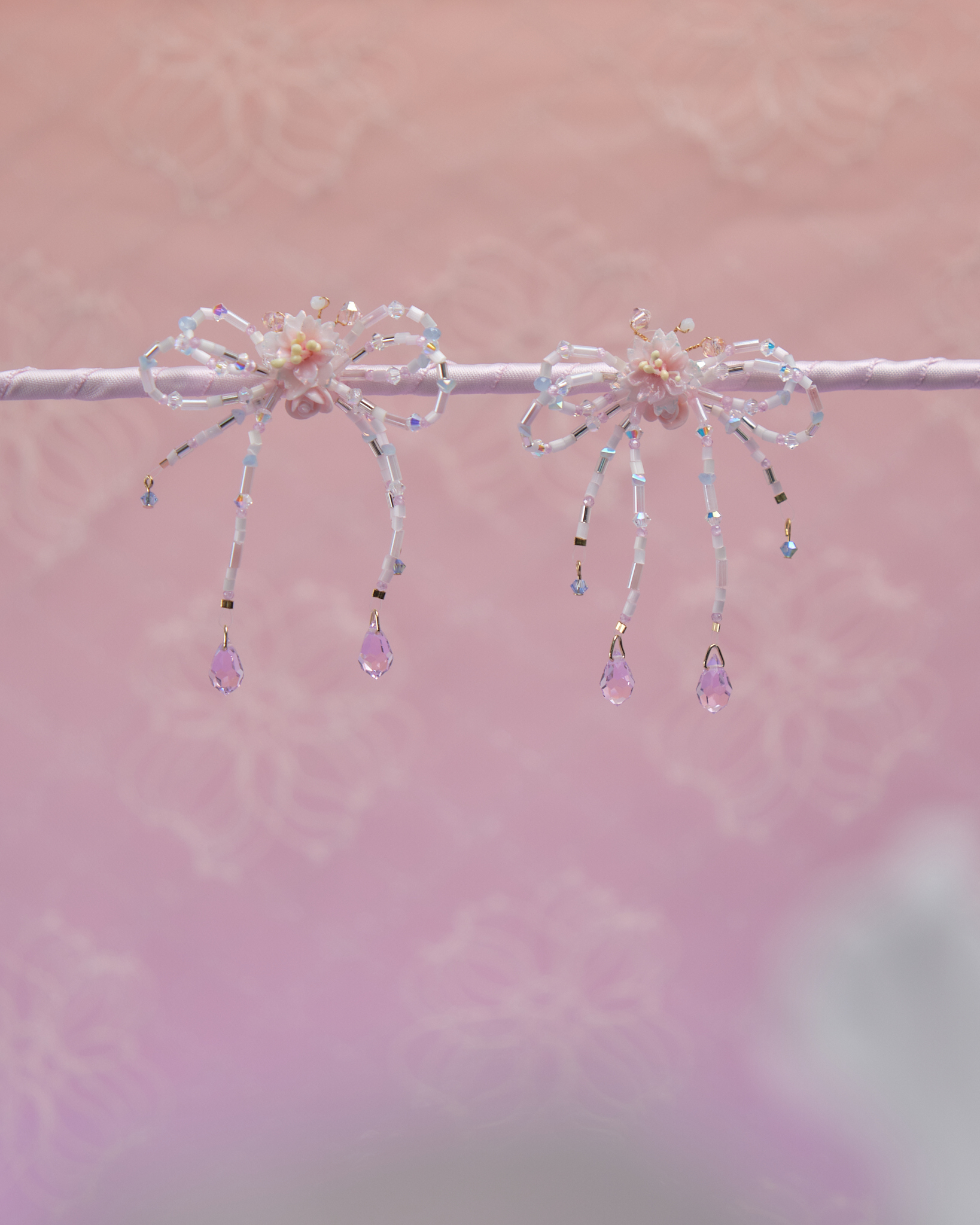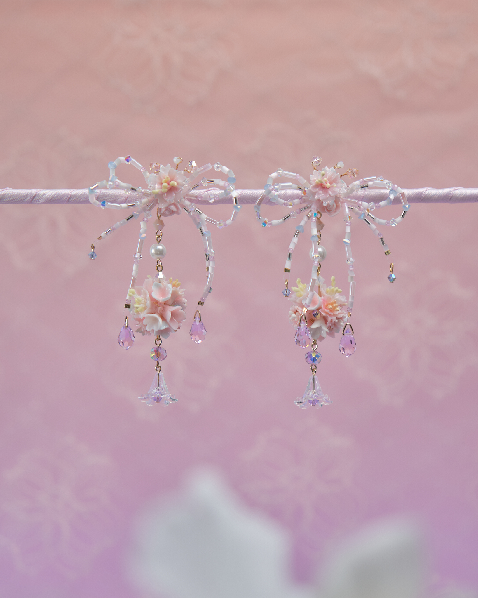 11820 Beaded Ribbon Bouquet S925 2-Way Earrings