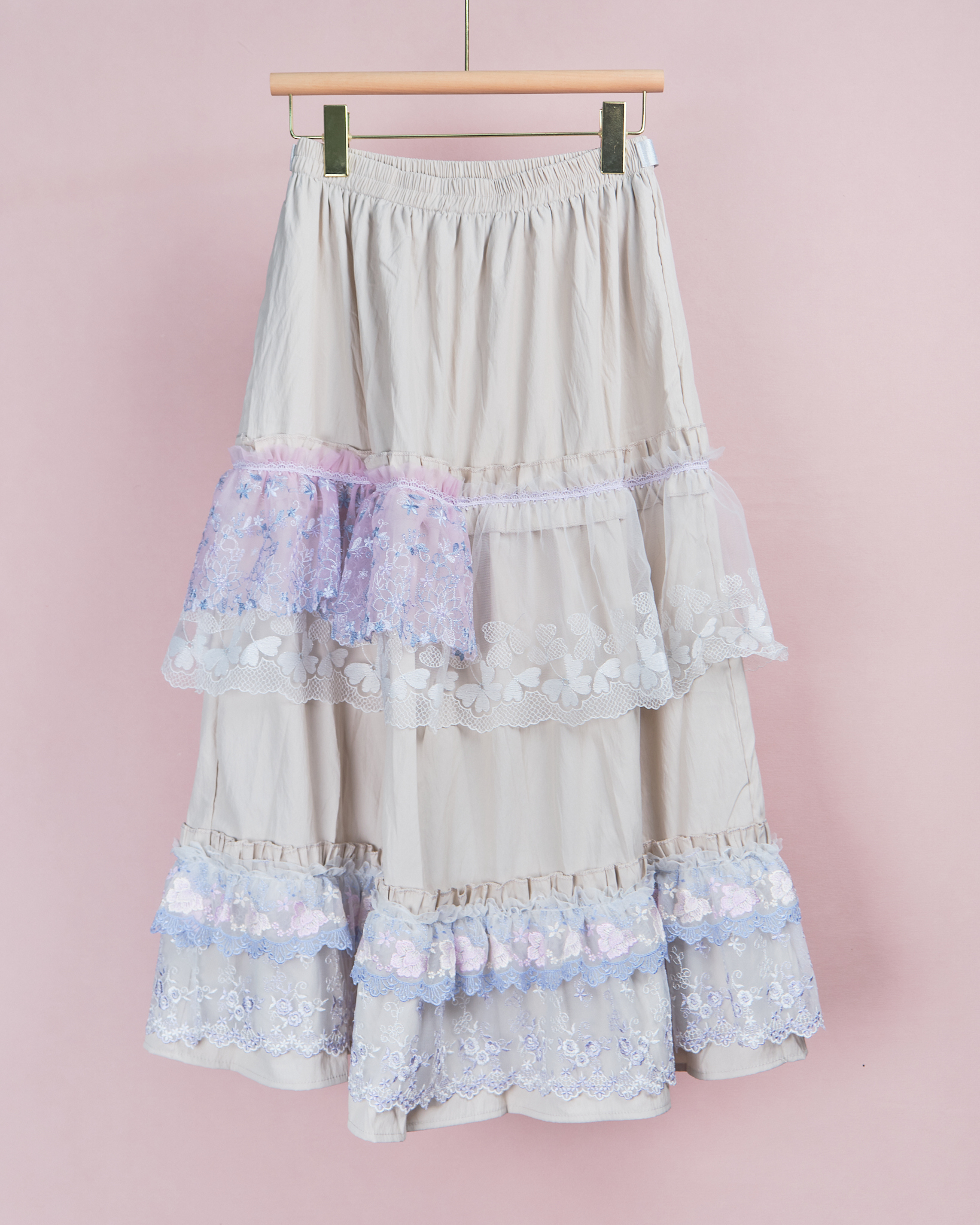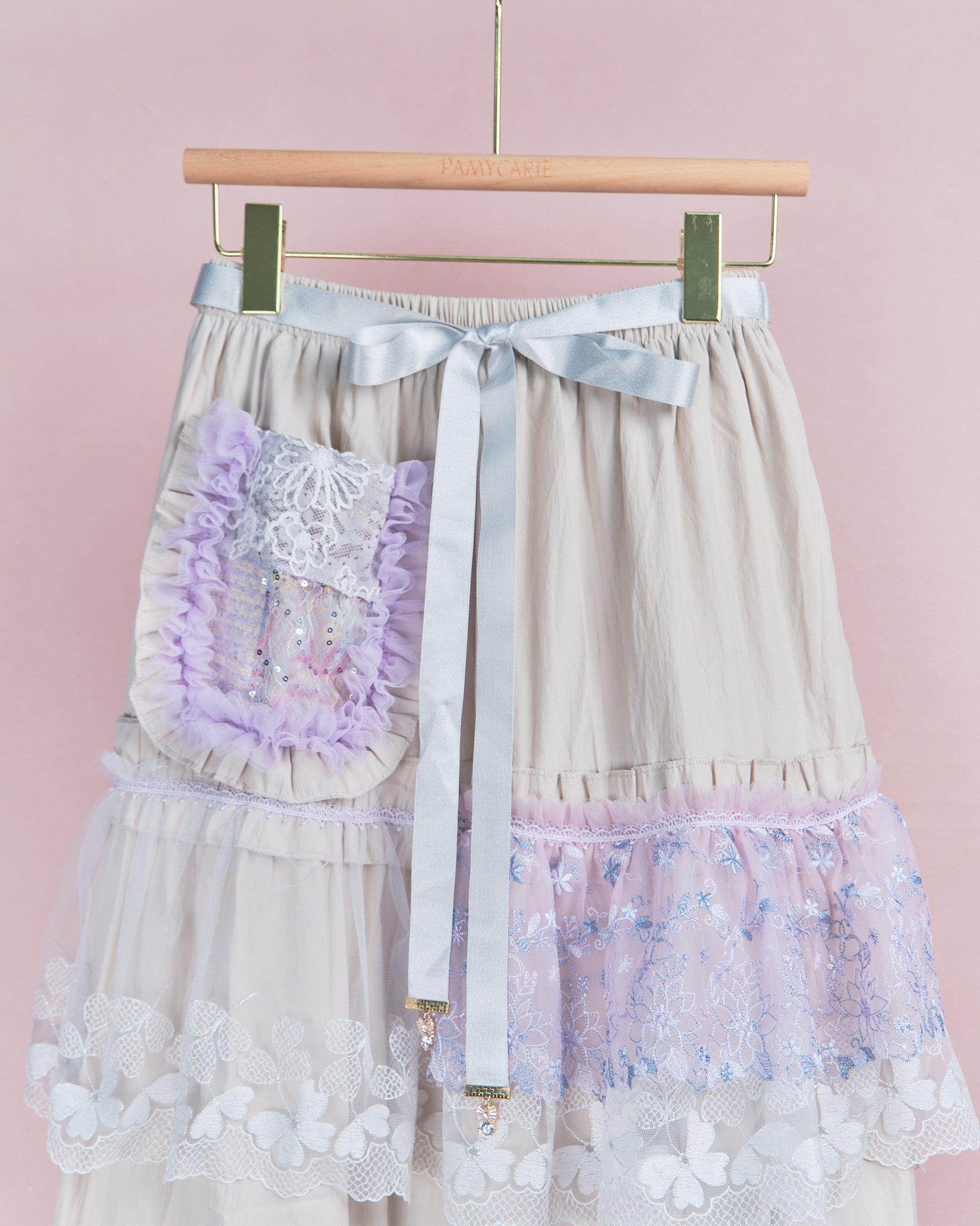 11942 Layered Lace Long Skirt with Mini Bag Design