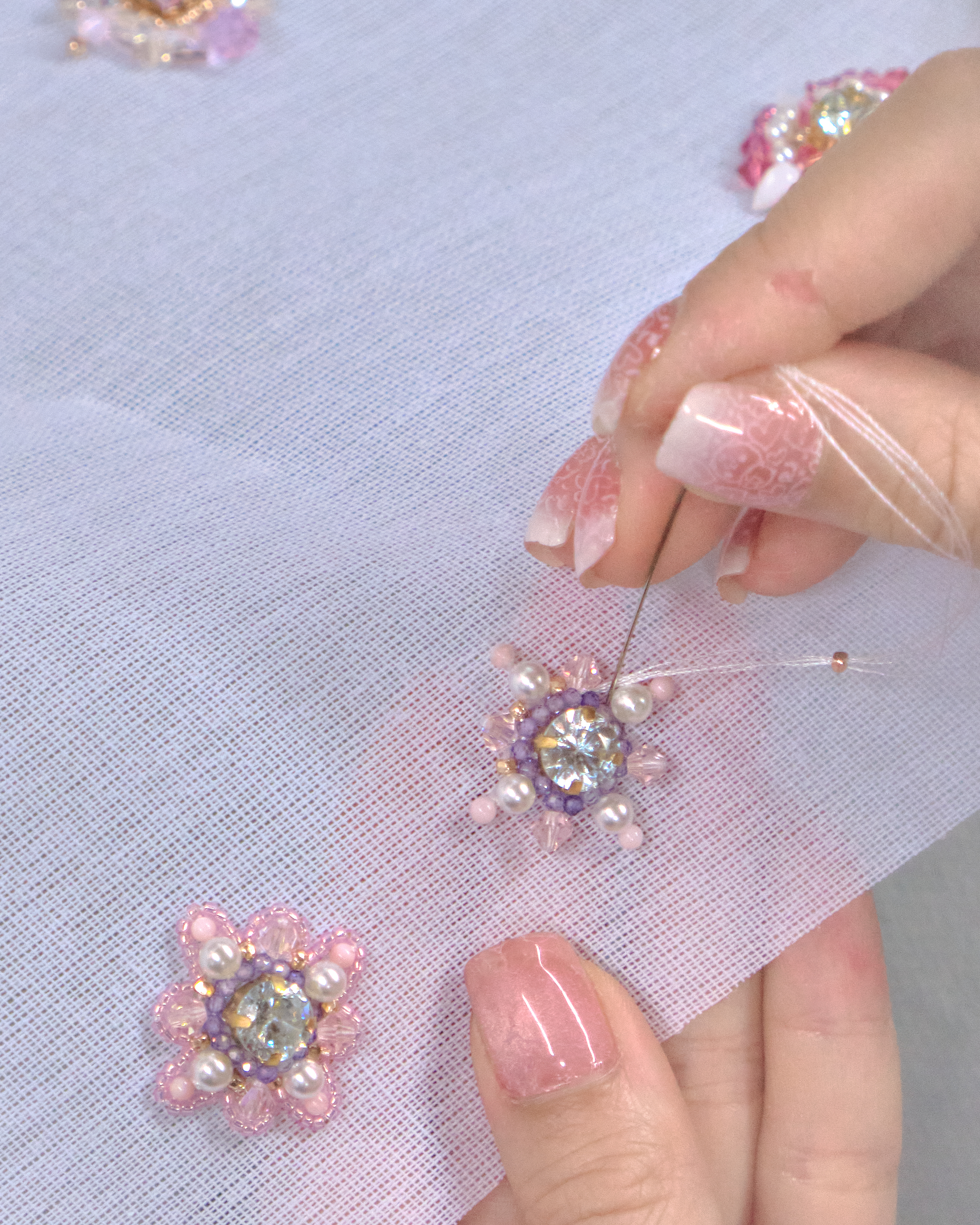 Crystals & Pearls | UV Resin Hardening Coating | Handcrafted Resin Flowers & hydrangea | Metal Parts | S925 Ear Studs | Embroidered Parts