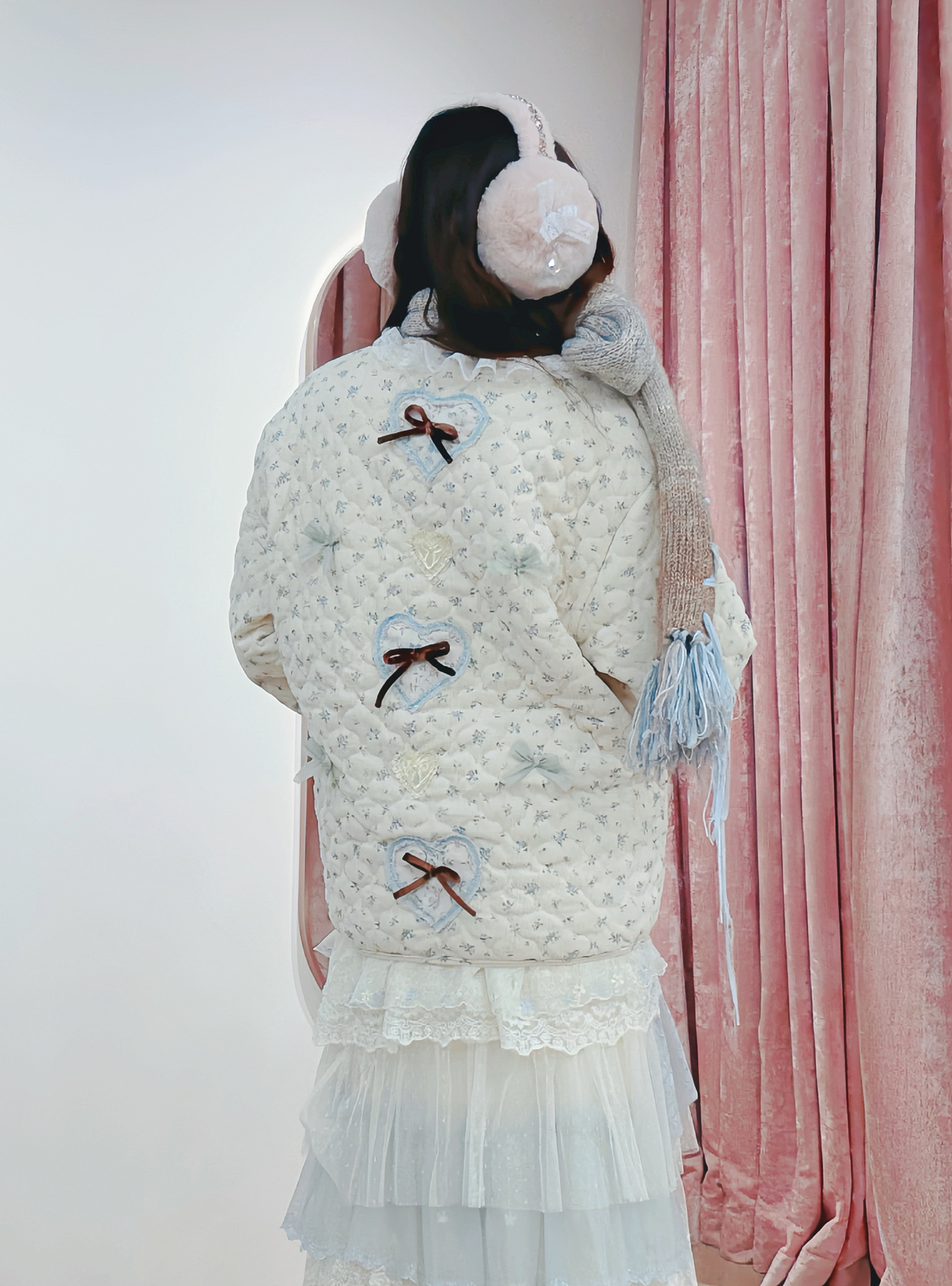 13157 Whisper-Pink Blossom Lace-Trimmed Quilted Jacket