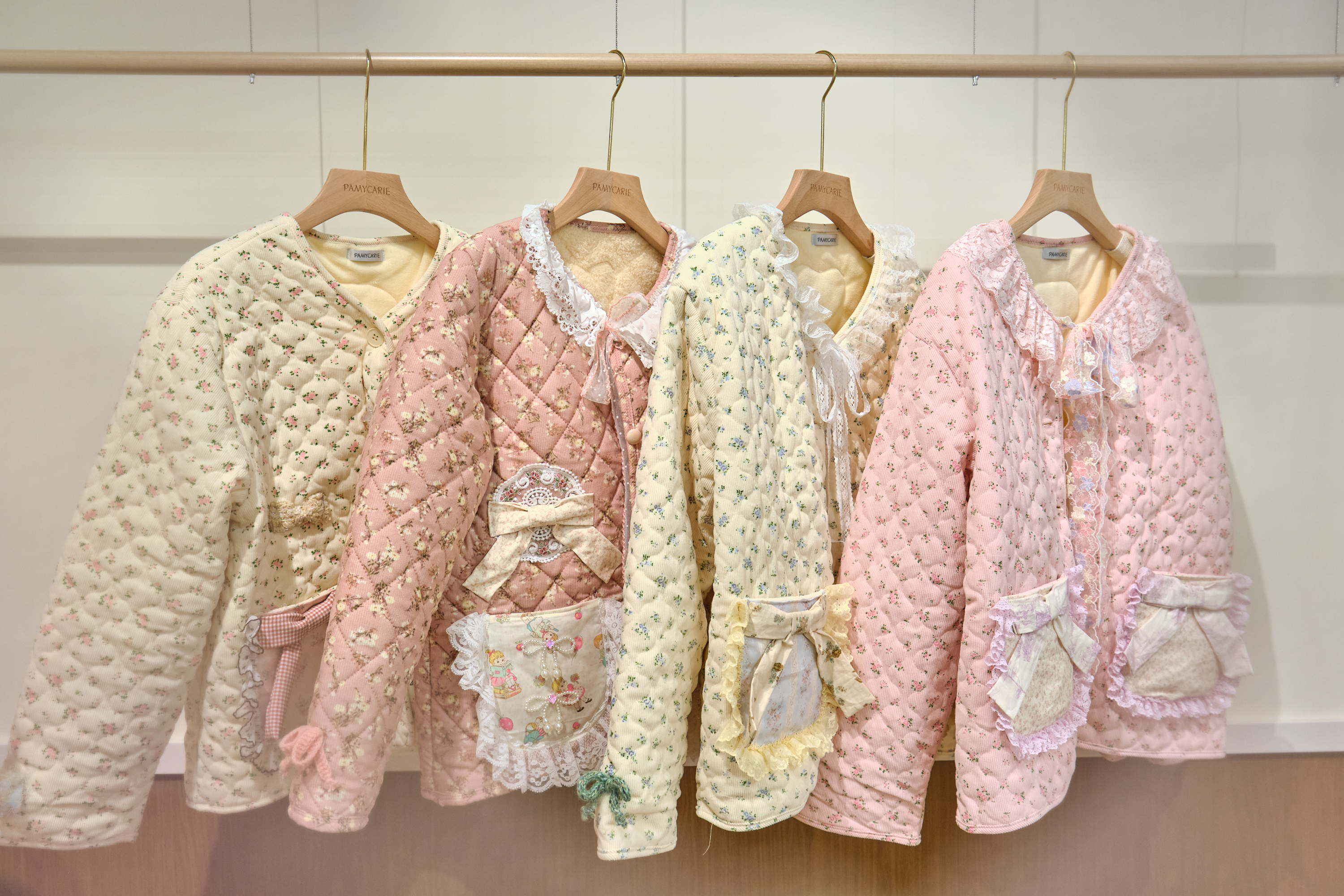 13159 Whisper-Pink Blossom Lace-Trimmed Quilted Jacket