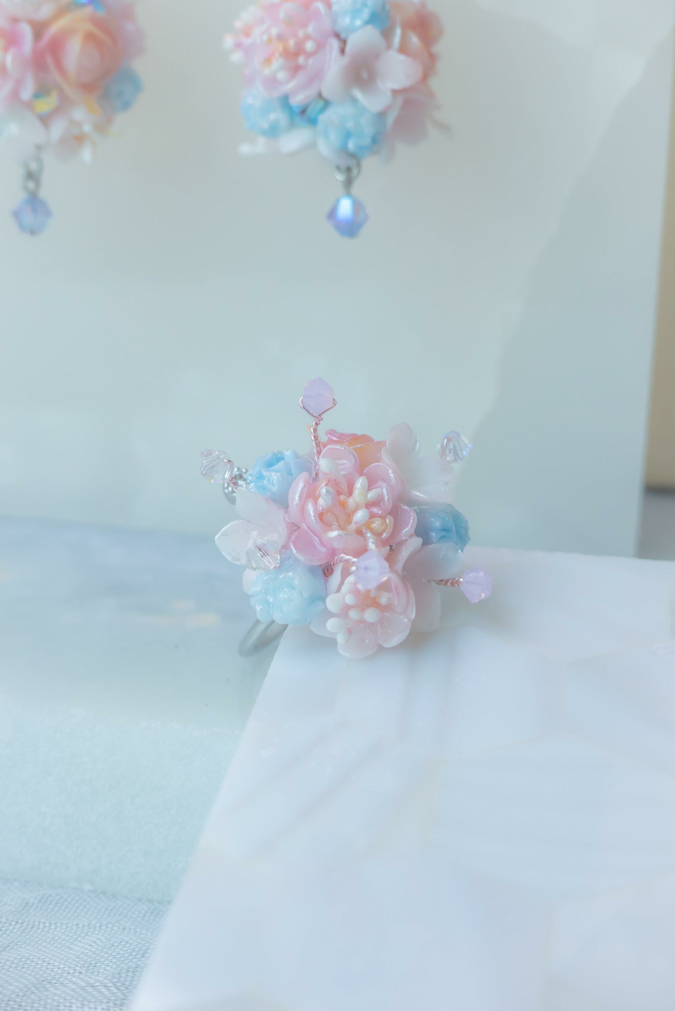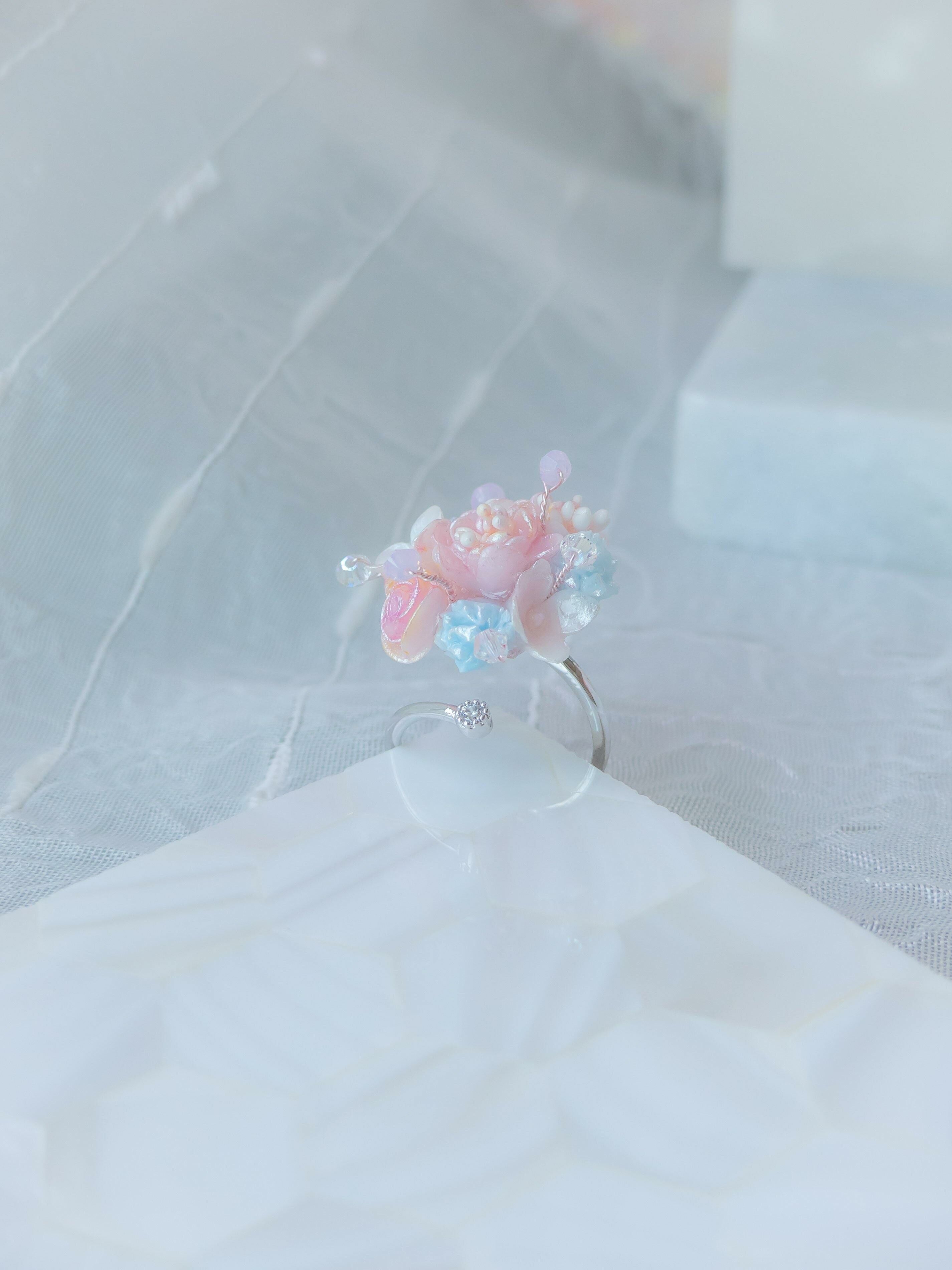 Gold Plated Artistic Wire | Austrian Crystal | Handcrafted Resin Clay Flowers | UV Hardening Coating | Silver-plated Metal Ring
