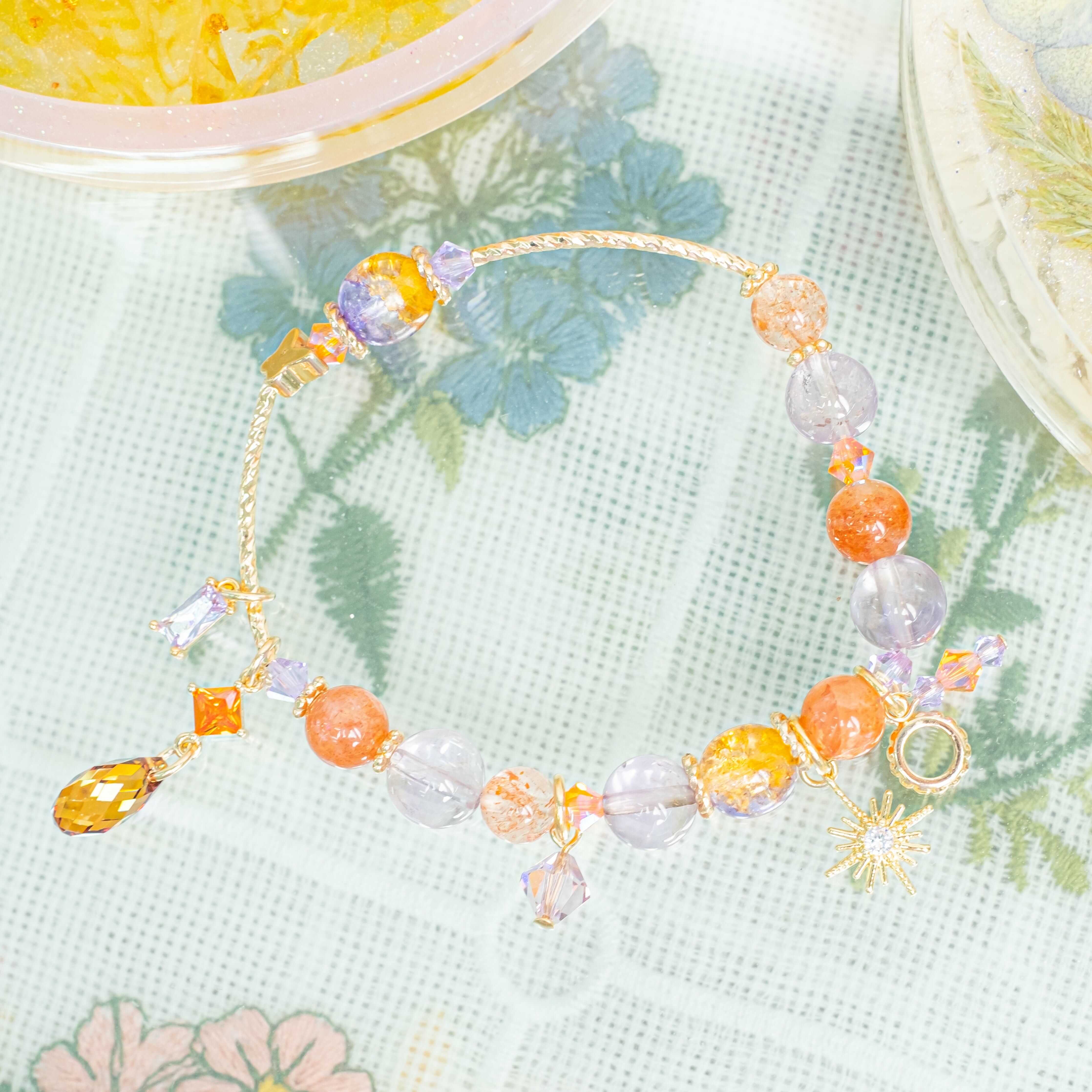 {𝟡} 太陽女神手鍊2件套裝:太陽石、紫晶