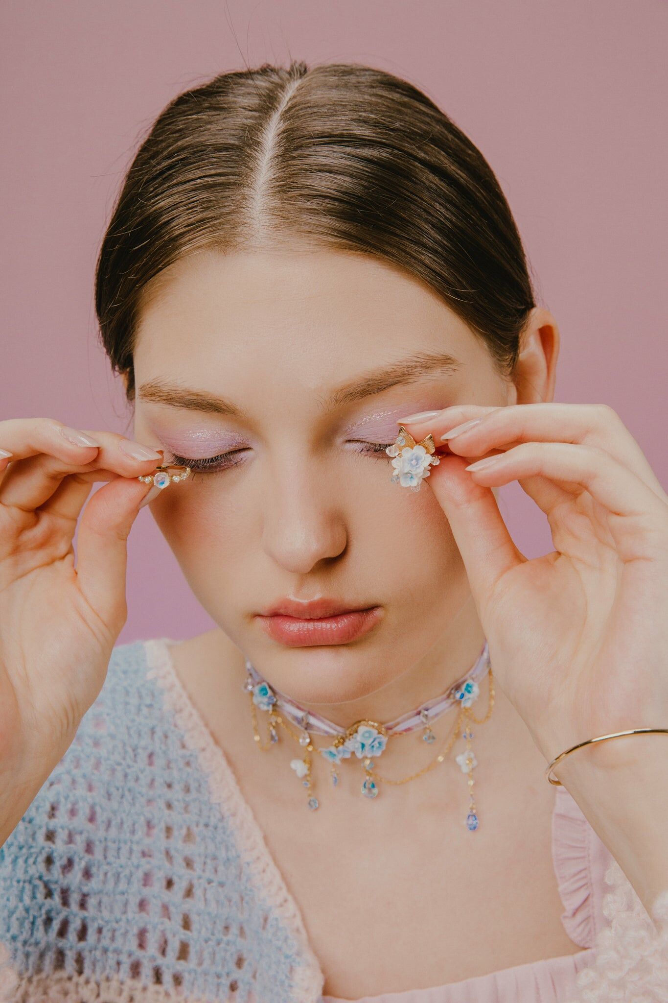 The Hydrangea is tough and fragile at the same time. The heart of a fair lady exactly shares such contradictory and complex nature Pamycarie presents the refreshing summer collection featuring the Hydrangea. The bloomy flowers in the garden and woods cools people off with a touch of blue. As miraculous as it is, the Hydrangea is a mirror of the soil and water. Its colours vary depending on the acidity of the soil. Water is also crucial to all species, not to mention the Hydrangea. The flower soon withers once it is away from water. Still, if it is hydrated promptly, it rejuvenates and shows its true colours.. The Hydrangea owns the exquisite beauty of its dreamy gradient colours. The production team studied the form and characteristics of the Hydrangea thoroughly. Displaying the rawest gradient, the artisans adopted the mixed-colour resin clay despite the time-consuming procedure. Filigree along with the embellished hand-painted globule highlight the filminess of the designs. The soil is indispensable to the flowers, which genuinely showcase the attributes of it.