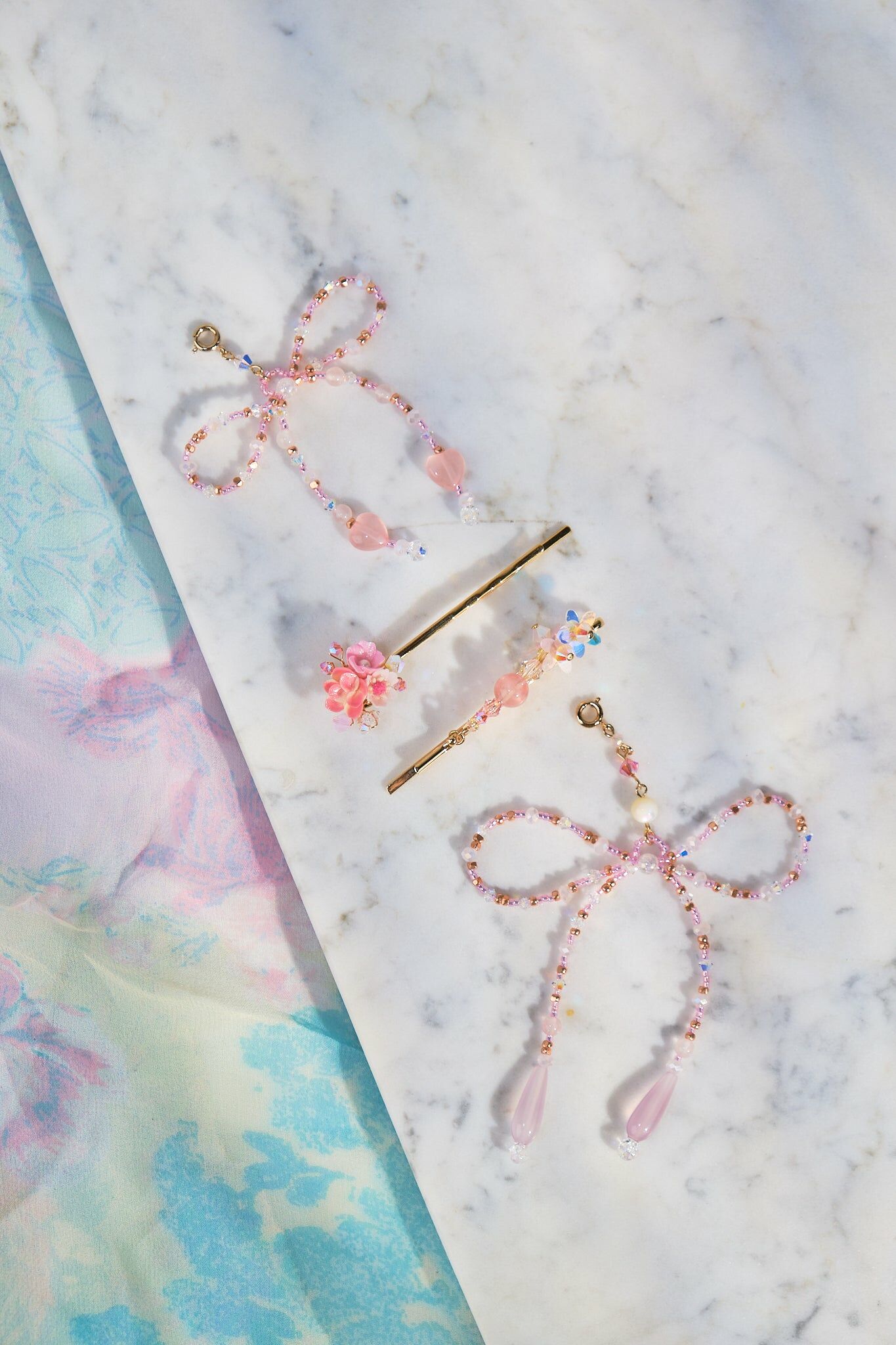 施華洛世奇水晶 | 天然水晶 | 日本玻璃珠 | 鍍14K金吊墜 | 鍍14K金/玫瑰金/銀髮夾