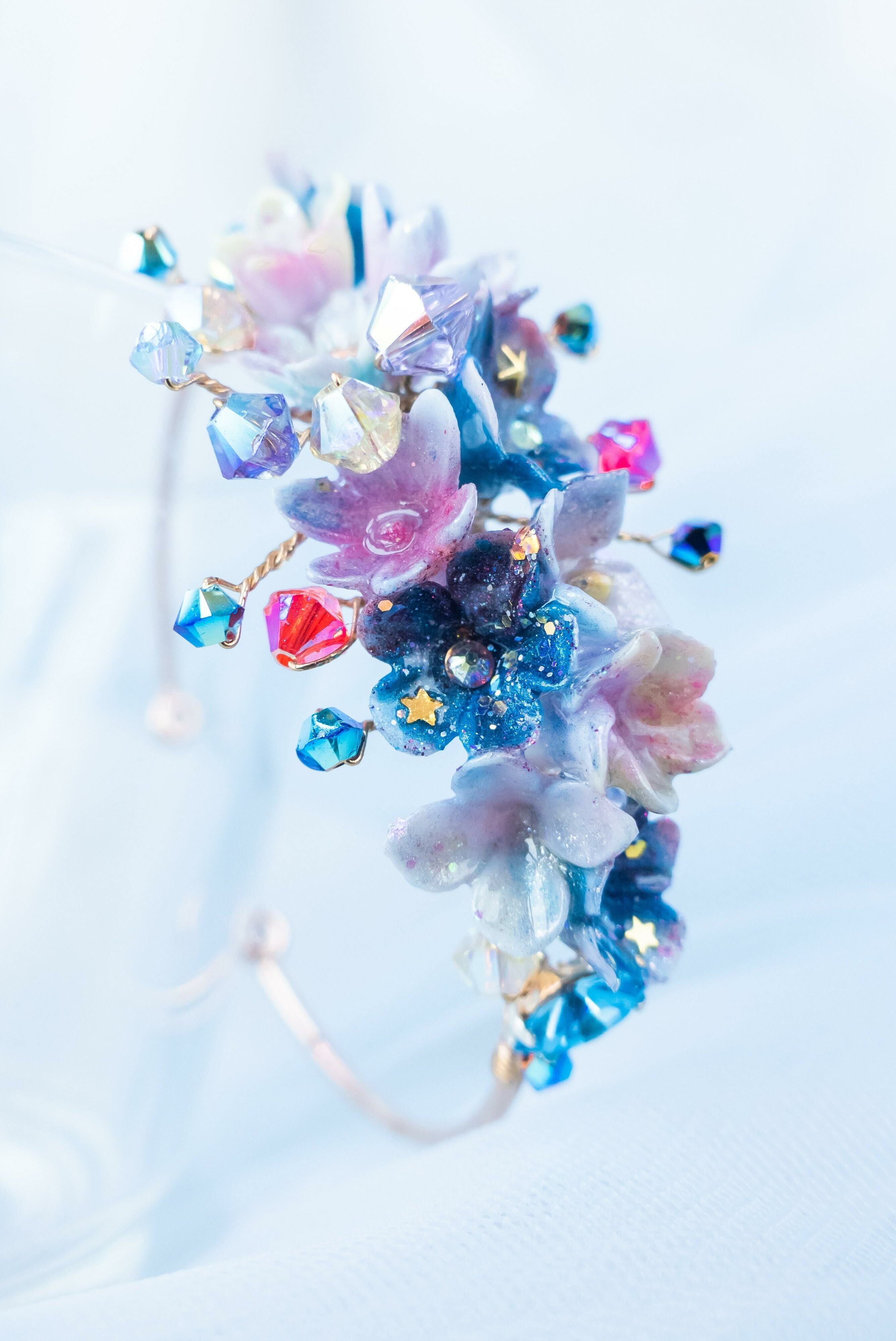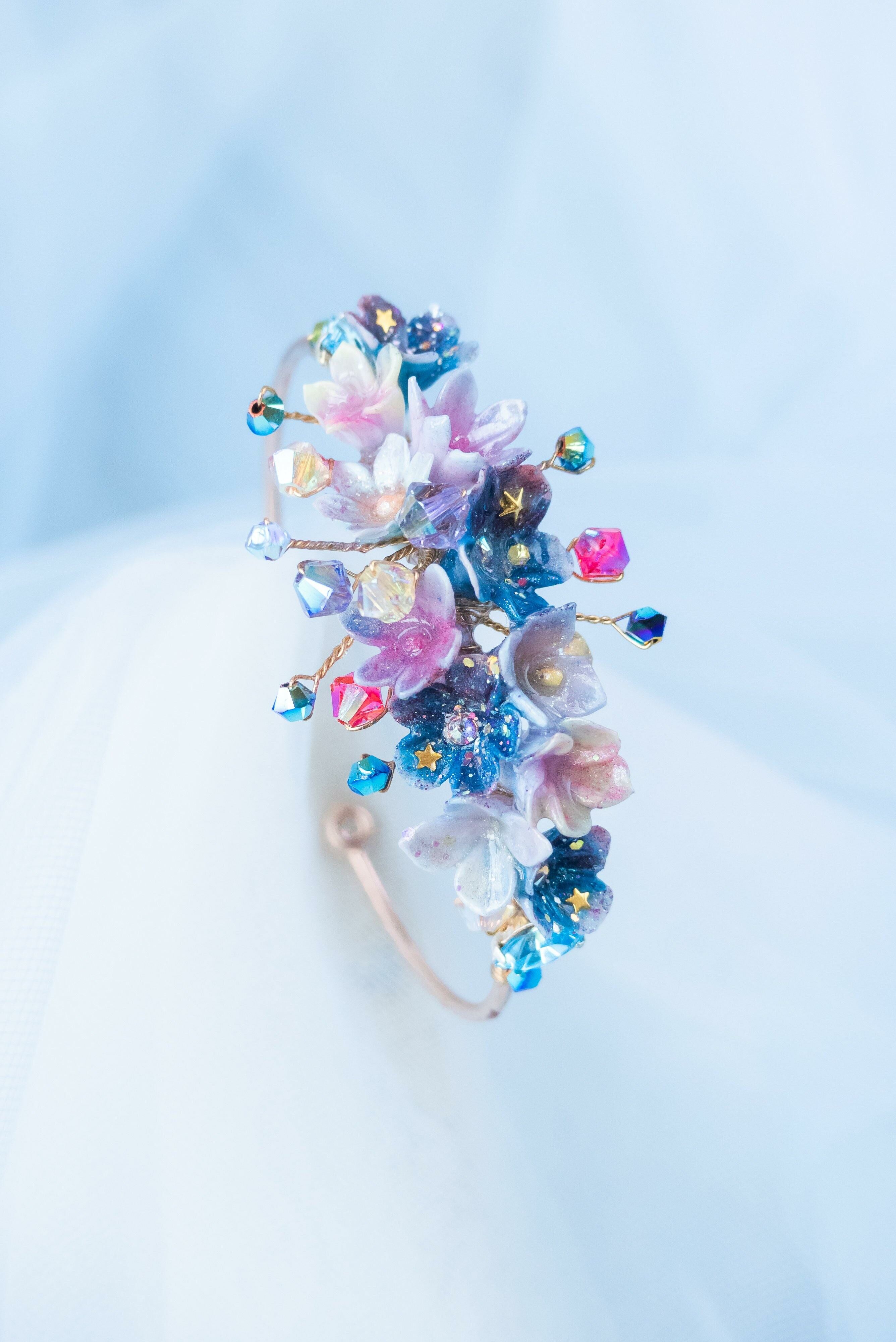 當中搶眼的星空小花經人手三重繪製,再在花瓣貼上精緻星宿,