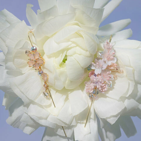 美國進口Beadsmith銀線 | 施華洛世奇水晶 | 手製樹脂黏土花| UV強化保護層 | S925耳針 | 摩根石