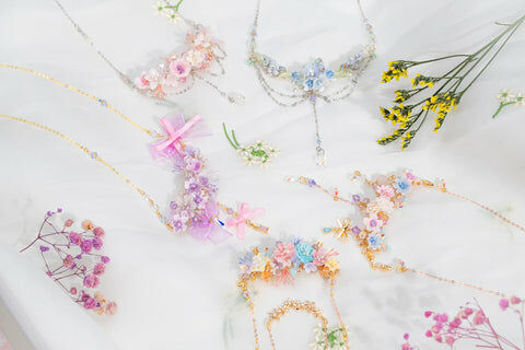 鍍金線 | 施華洛世奇水晶 | 手製樹脂黏土花 | UV膠強化保護層 | 925純銀項鏈