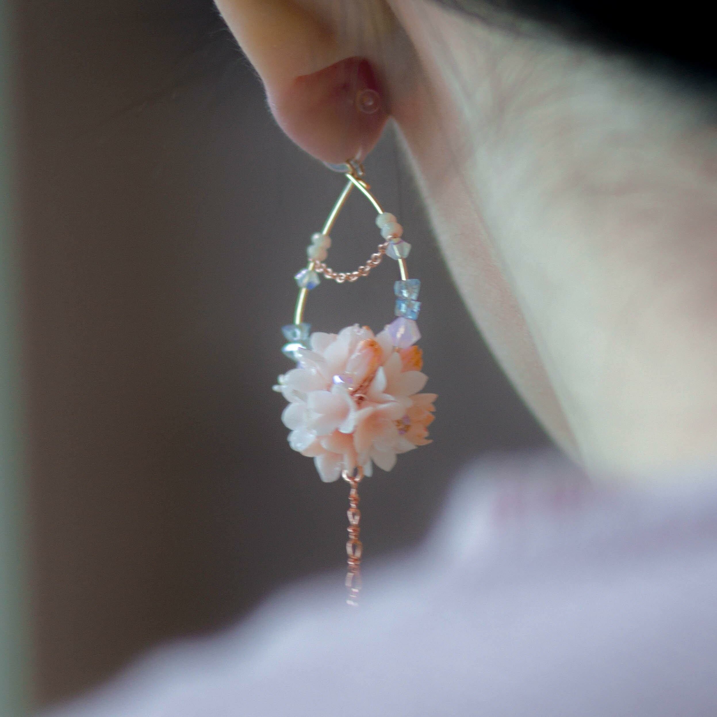 American Bead Smith Silver Wire | Austrian Crystal | Japanese Cubic Zirconia (CZ) | Handcrafted Resin Clay Flower | UV Hardening Coating | 14K Gold-plated Metal Hoop