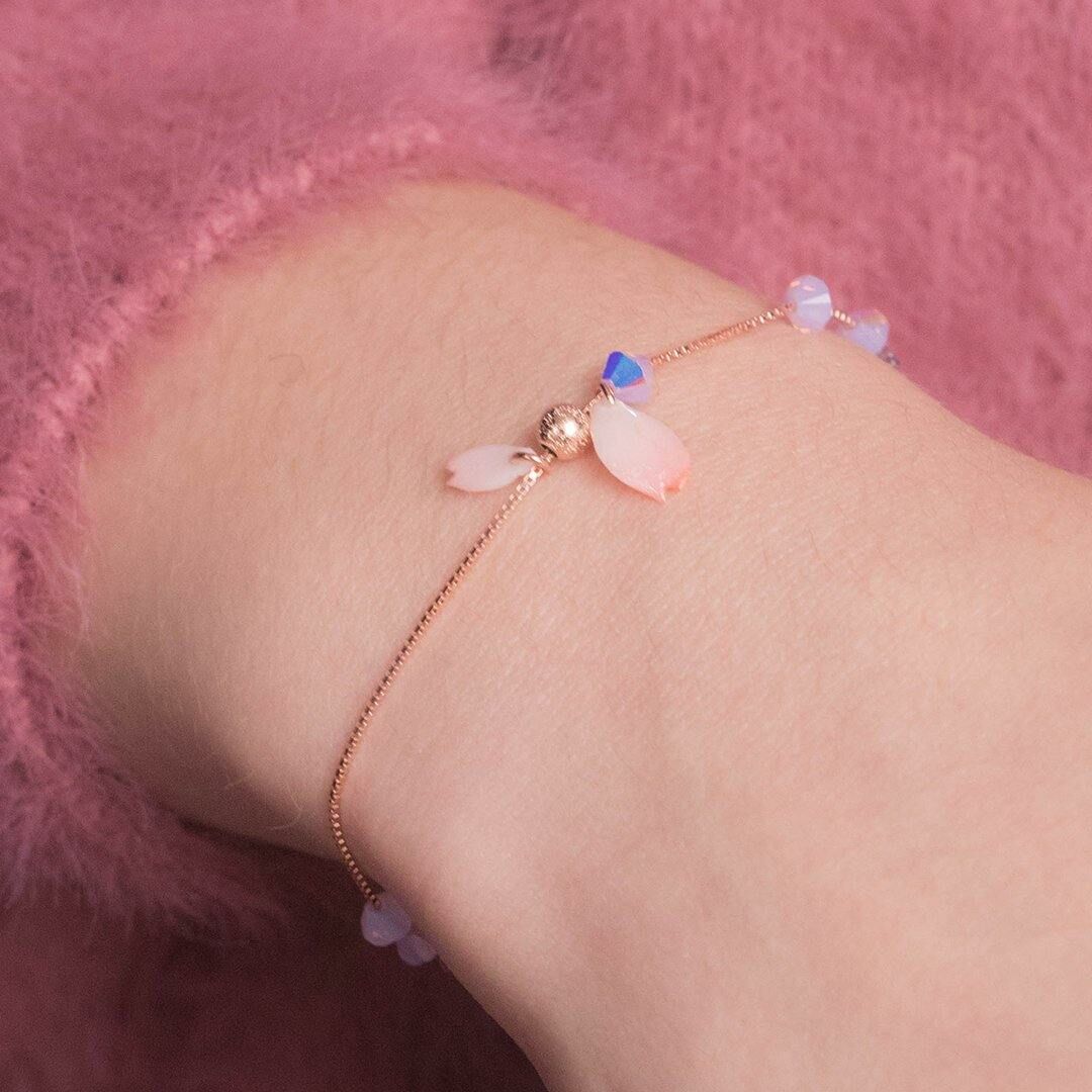 美國進口Beadsmith純銀線 | 奧地利水晶 | 日本鋯石 | 手製樹脂黏土花 | UV膠強化保護層 | 銅鍍玫瑰金925純銀手鍊