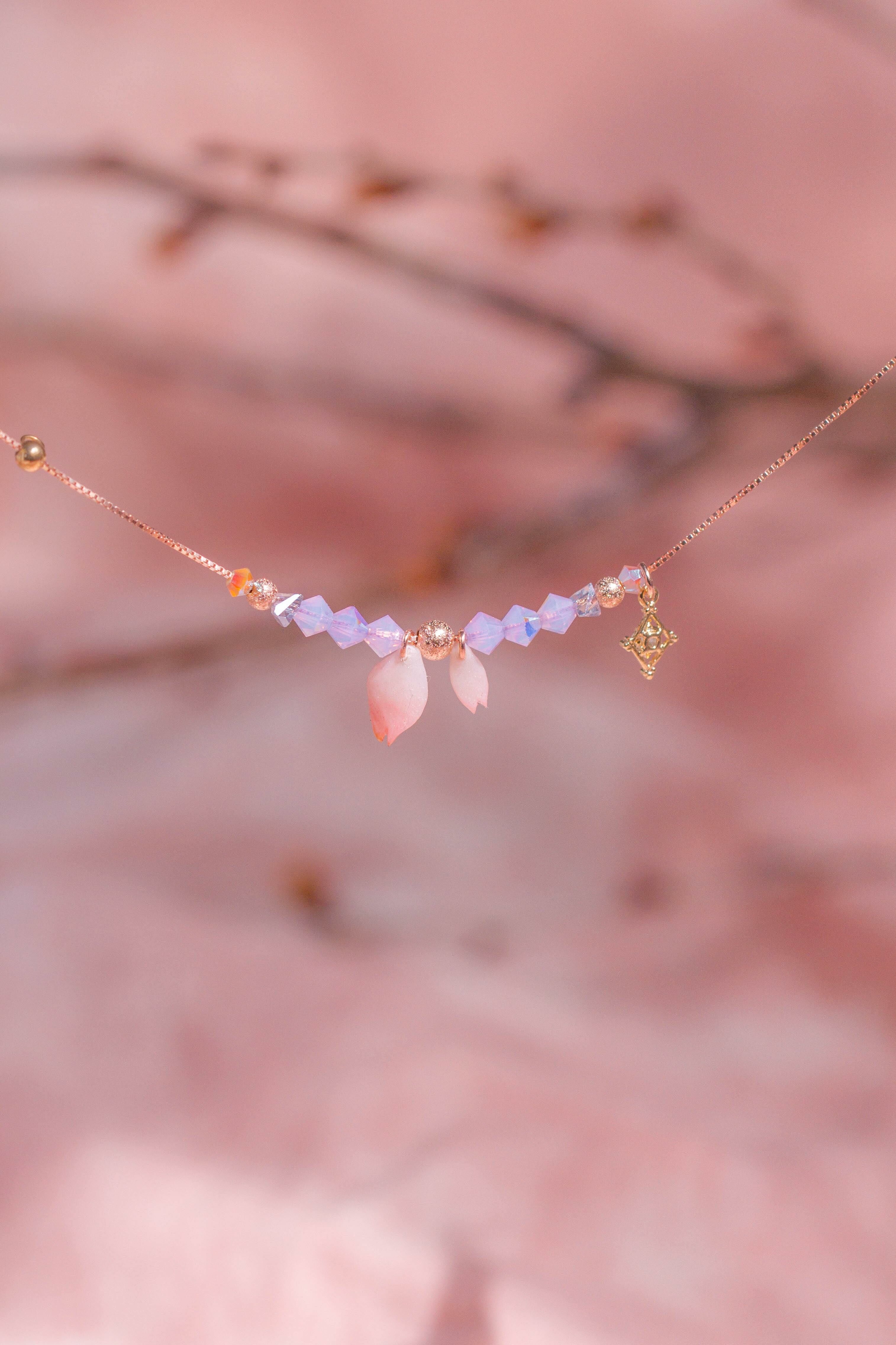 American Bead Smith Silver Wire | Austrian Crystal | Japanese Cubic Zirconia (CZ) | Handcrafted Resin Clay Flower | UV Hardening Coating | Rose-gold-plated 925 Silver Bracelet