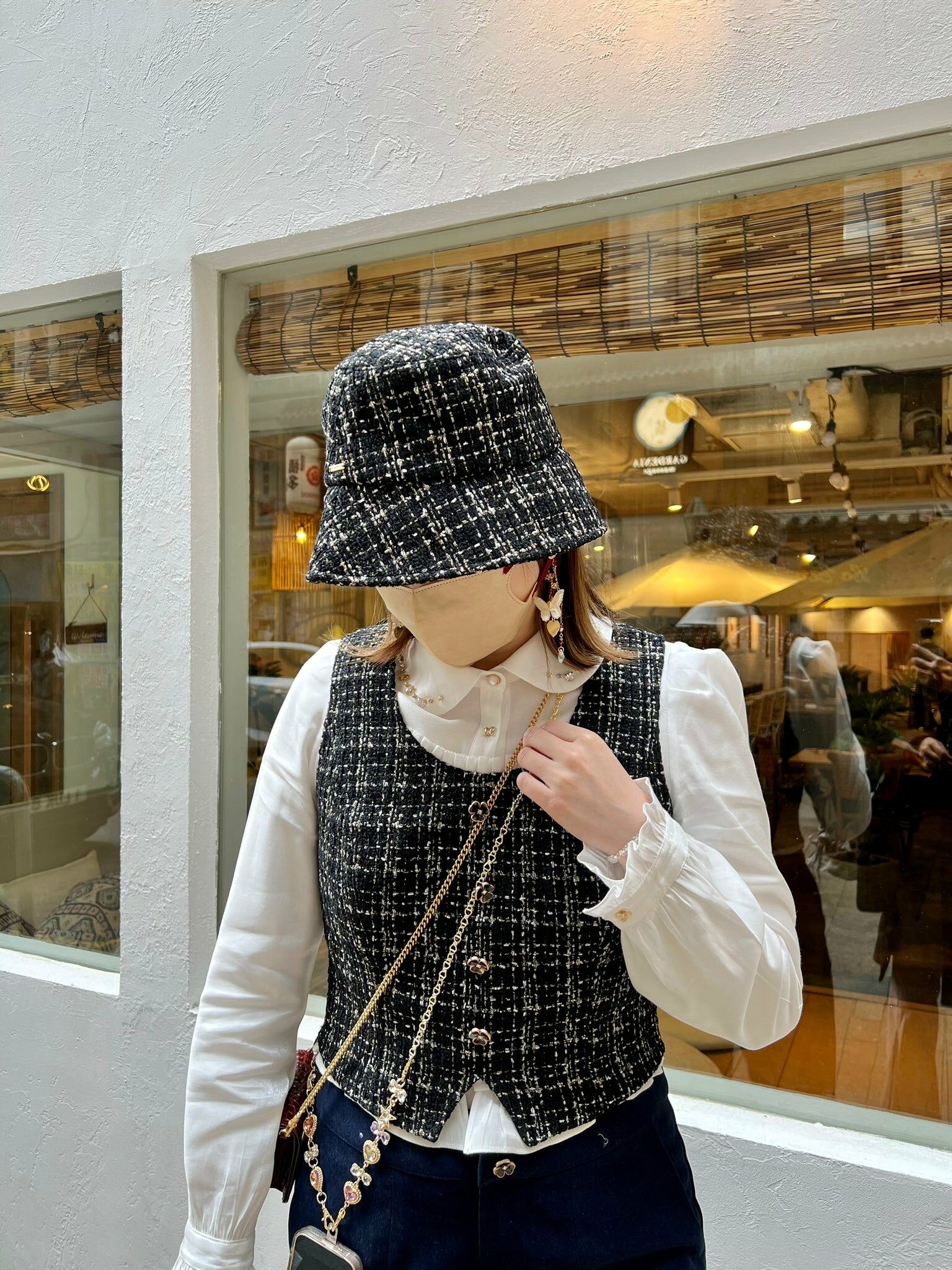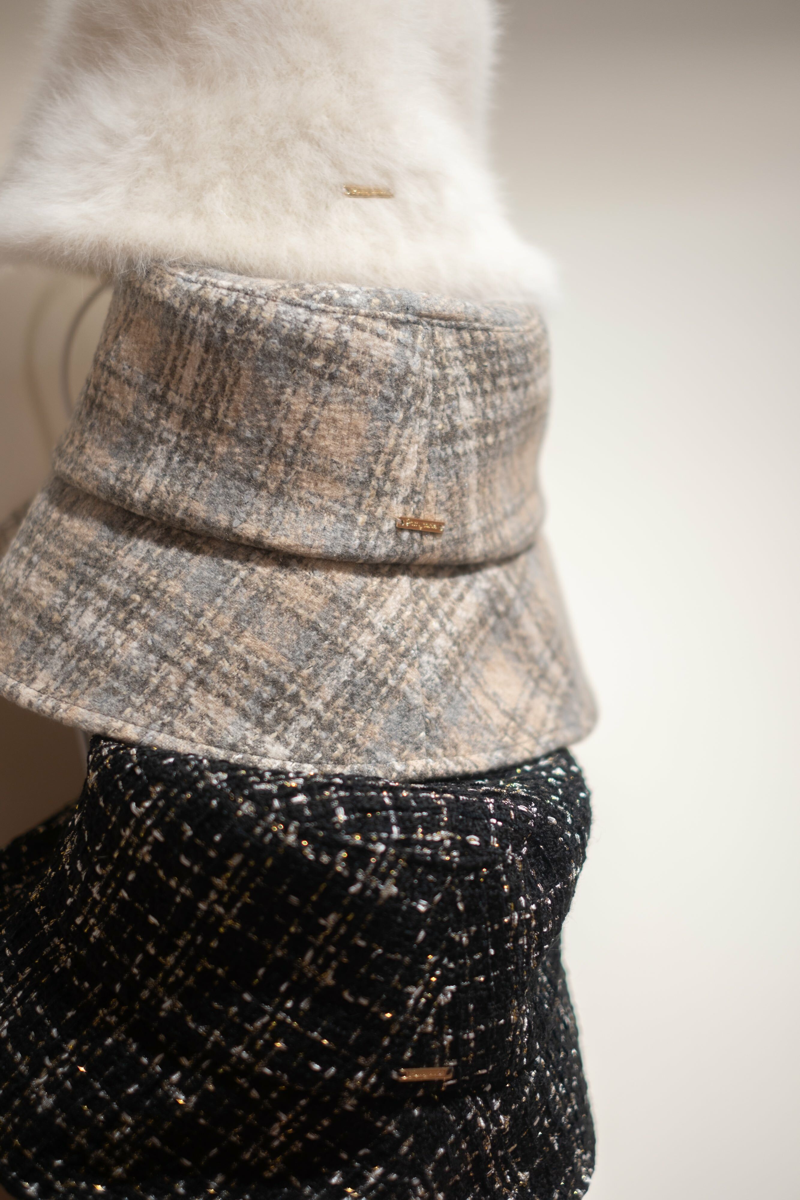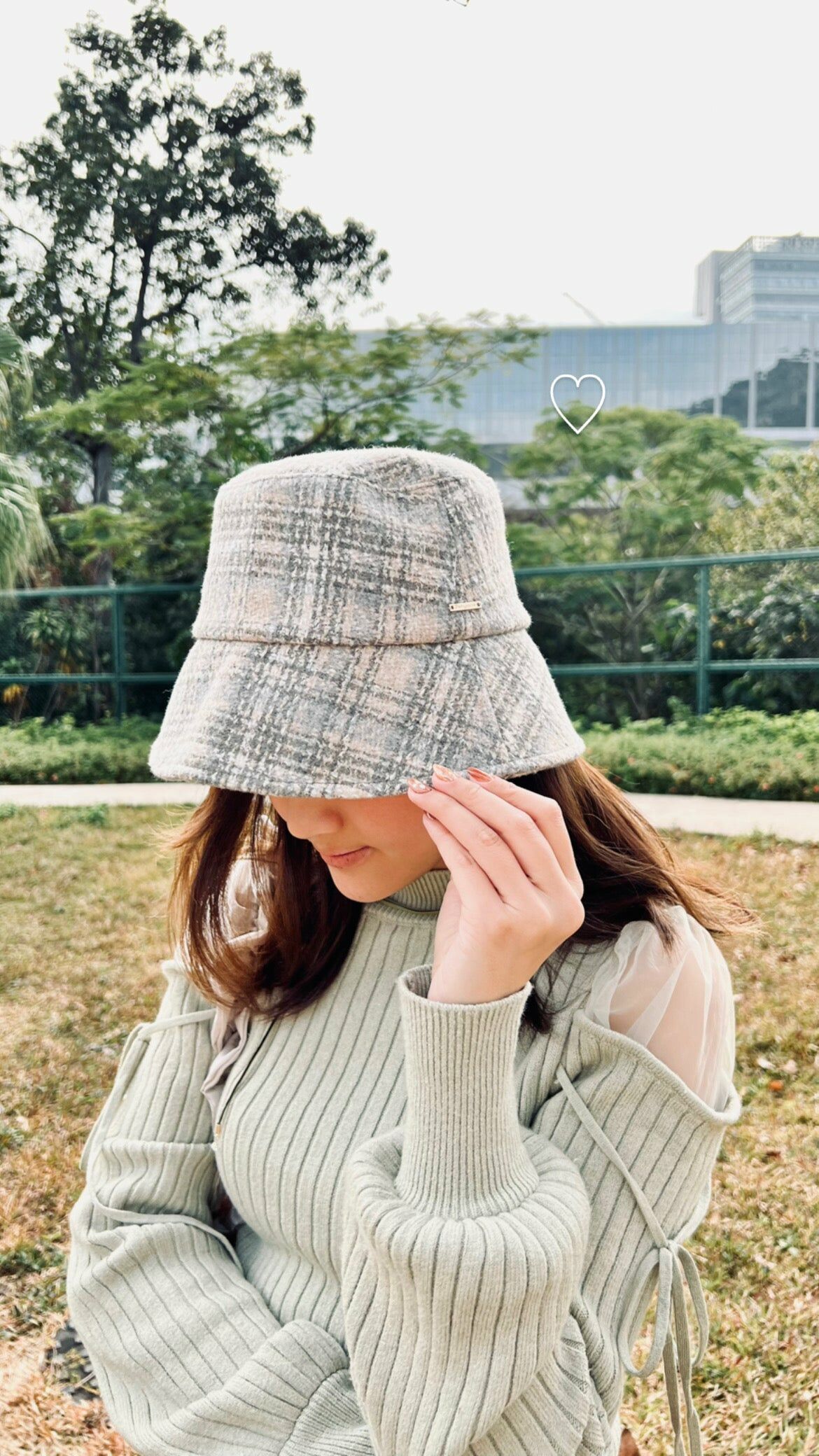 漁夫帽子 (米白/格子/粉色)