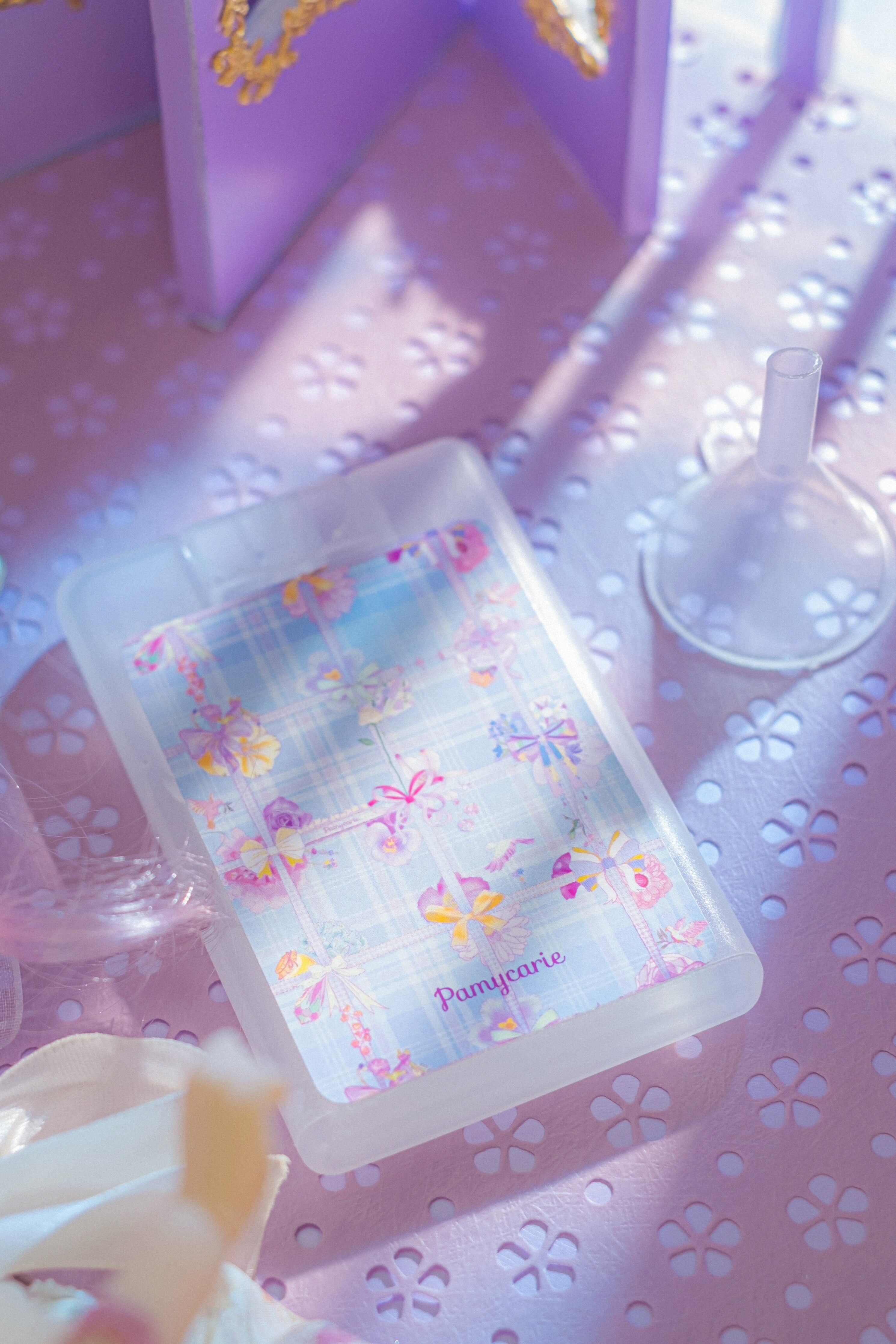印有Pamycarie自家圖騰,小巧的瓶身加上卡片形狀,無論女孩的包包有多迷你也能放下 !噴霧器附有漏斗,你可以自由選擇注入酒精或是香水、衣物噴霧等等的液體。