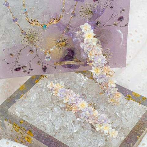 Handcrafted Cold Polymer Clay Flowers | UV hardening Protection Gel | Swarovski Crystal | 14K Gold-plated Ornament