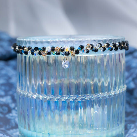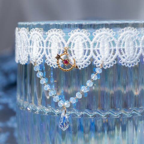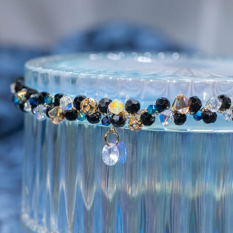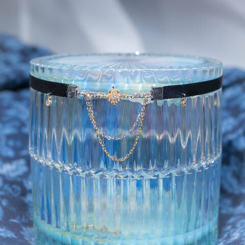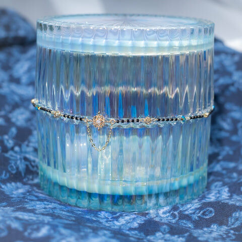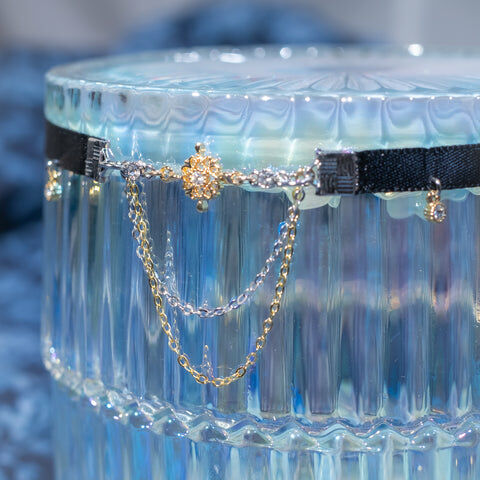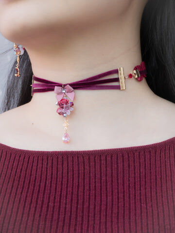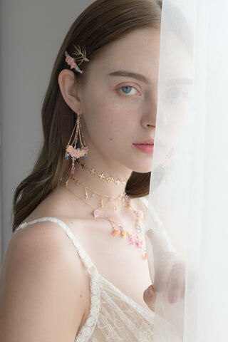 鍍金線 | 施華洛世奇水晶 | 手製樹脂黏土花 | UV膠強化保護層 | 絲帶布料