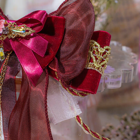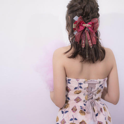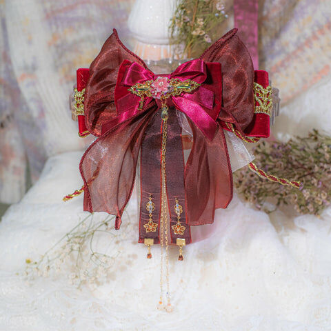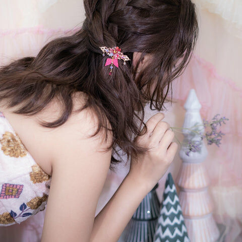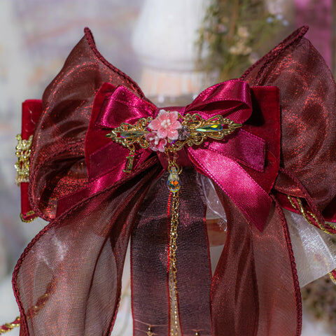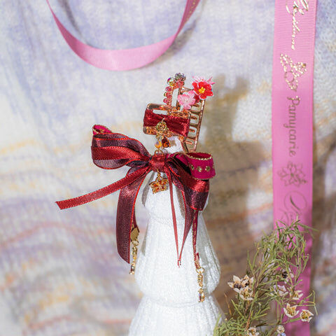 2 ❅ 棗紅聖誕花蝴蝶結鍍玫瑰金鯊魚夾(2-way)