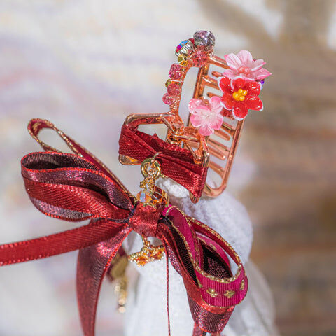 (~4CM Claw Clip + 2-way detachable ribbon pendant)