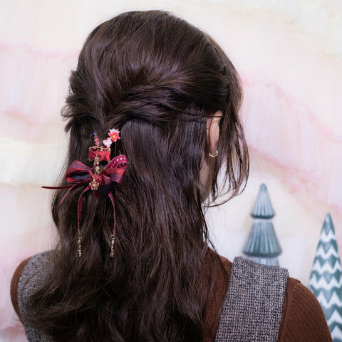 5 ❅ 暗紅聖誕花蝴蝶結配MINI髮夾