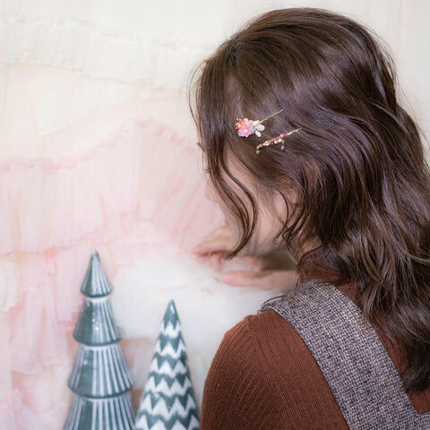 1 ❅ 聖誕花芍藥花束鍍金彎月一字夾