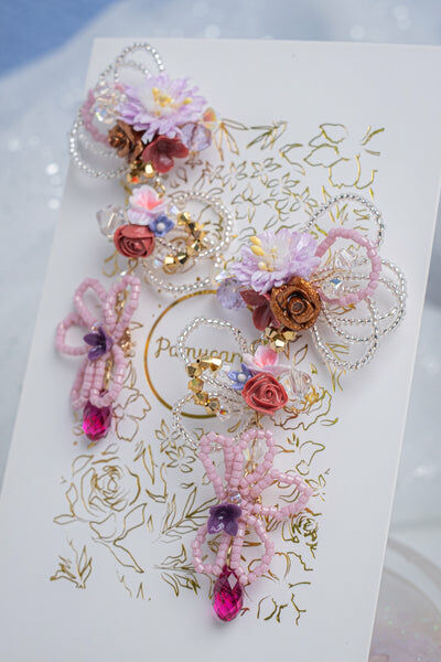 這次新的耳環款式揉合了全人手穿製的日本玻璃珠,