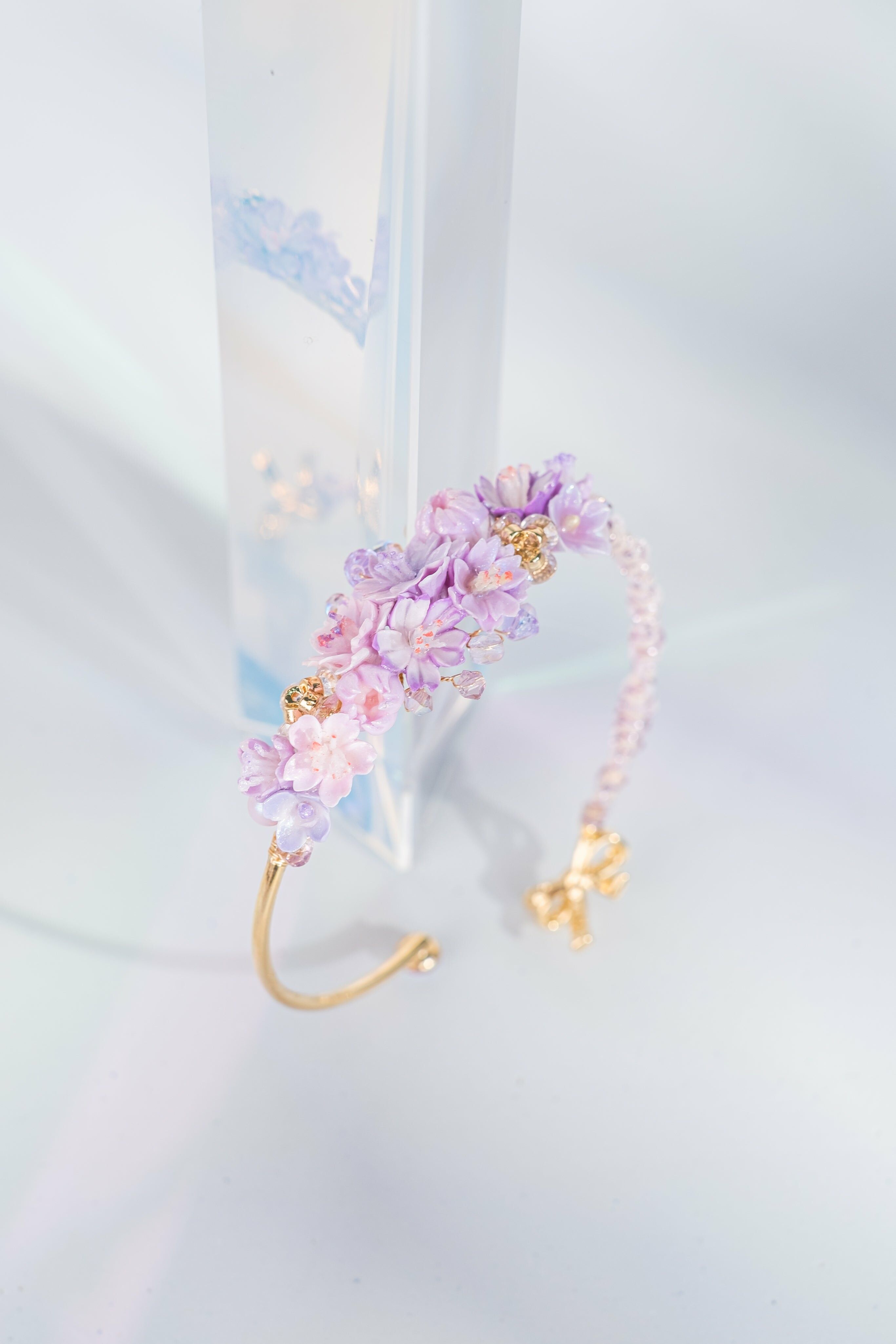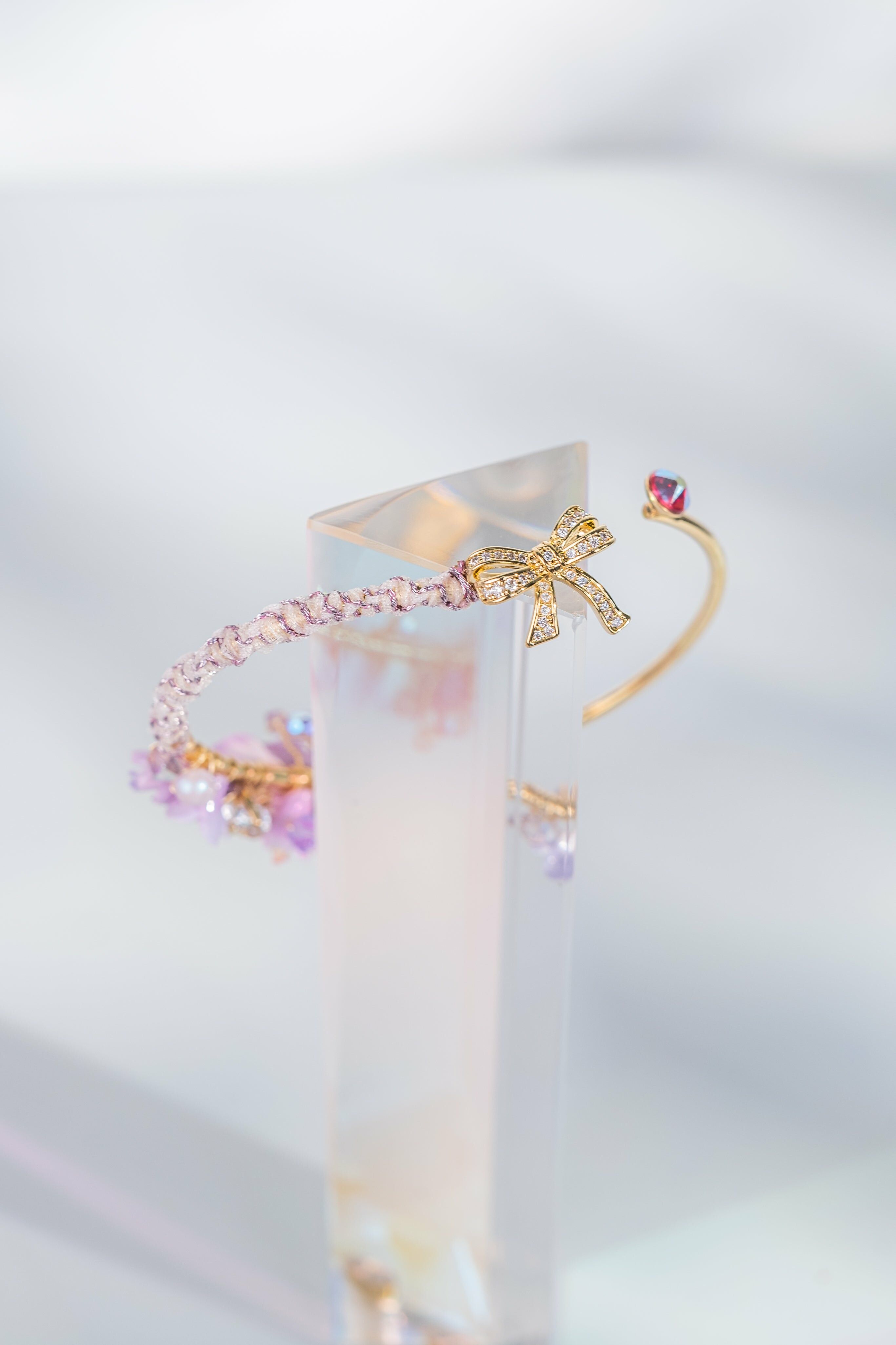 編織也加入了這次的新系列設計元素!這款手鐲有一半被緞帶編織所包覆,感覺活潑可愛,加上粉嫩紫櫻小巧可愛!就像變幻不定的春天一樣,櫻花的面貌同樣也是多變,每次都能讓人充滿新鮮感。