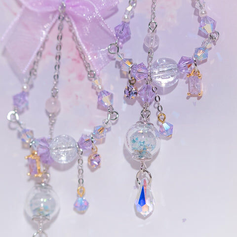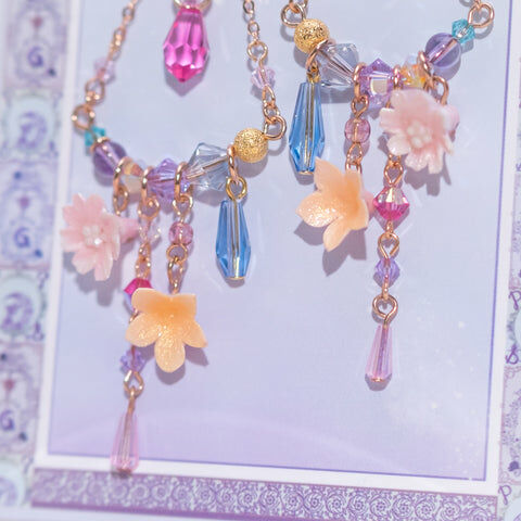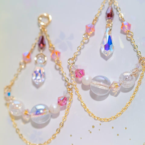 鍍金線 | 施華洛世奇水晶 | 手製樹脂黏土花 | UV膠強化保護層