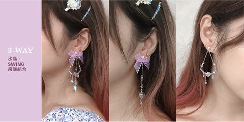 Design 1 - 蝴蝶結水晶球SWING耳吊墜(不連耳釘)