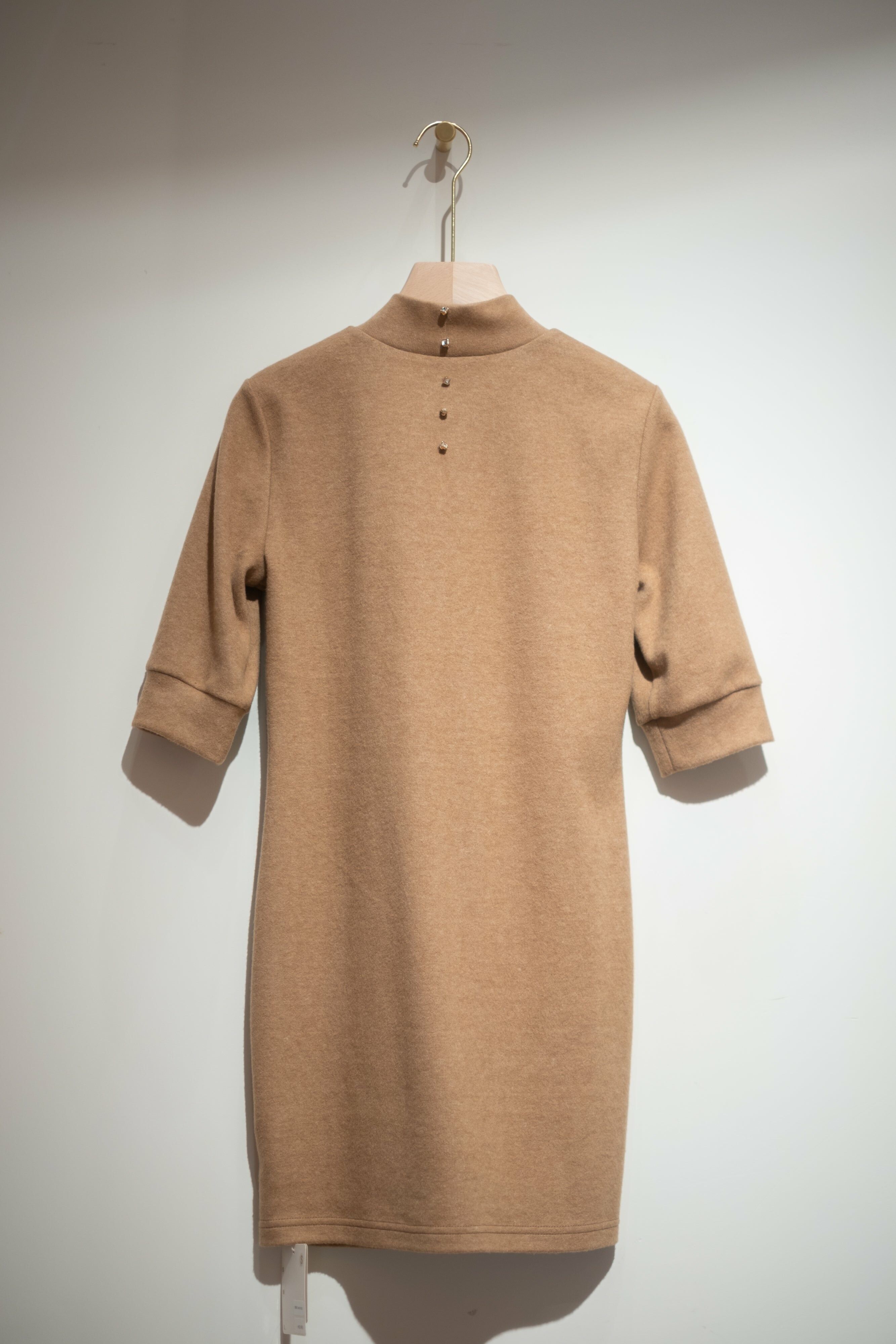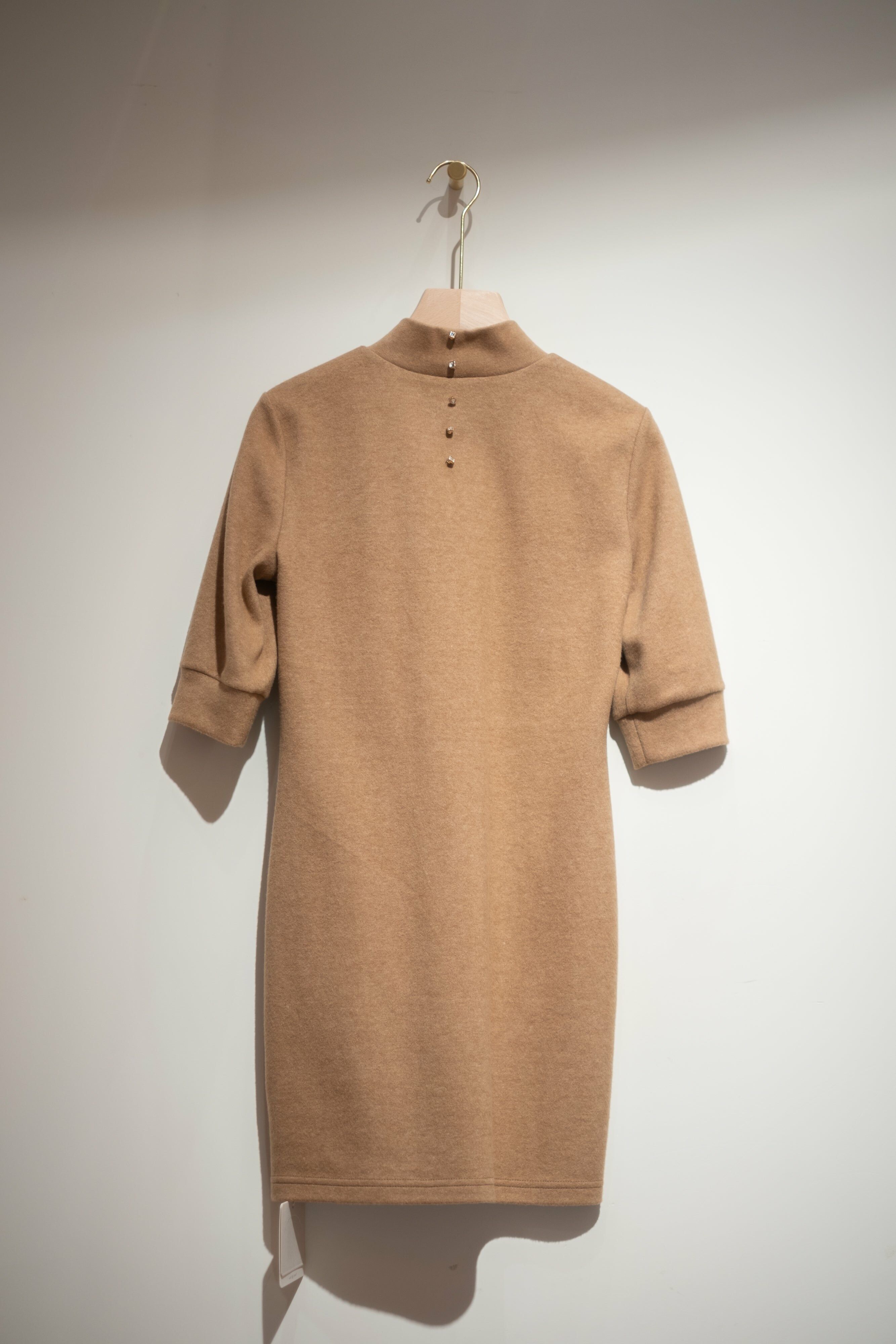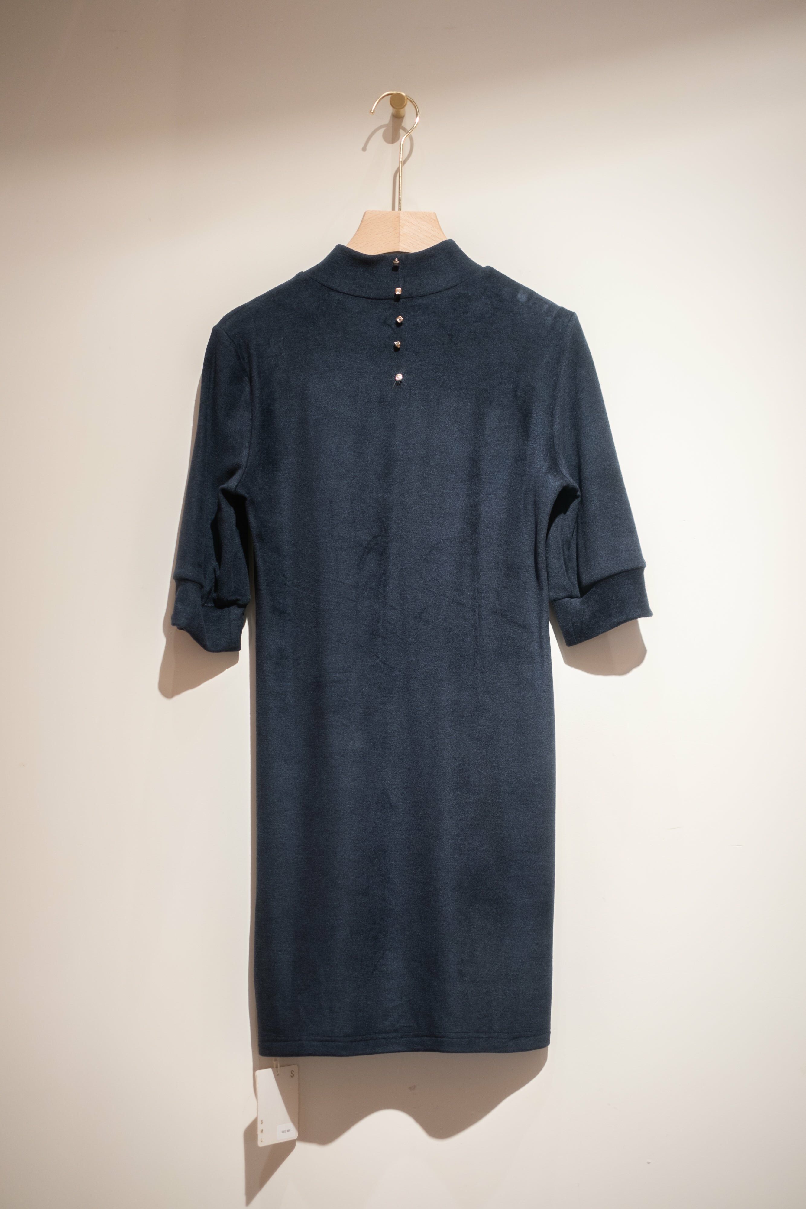 澎袖釘石連衣裙連手袖套 (灰藍色/卡其色)