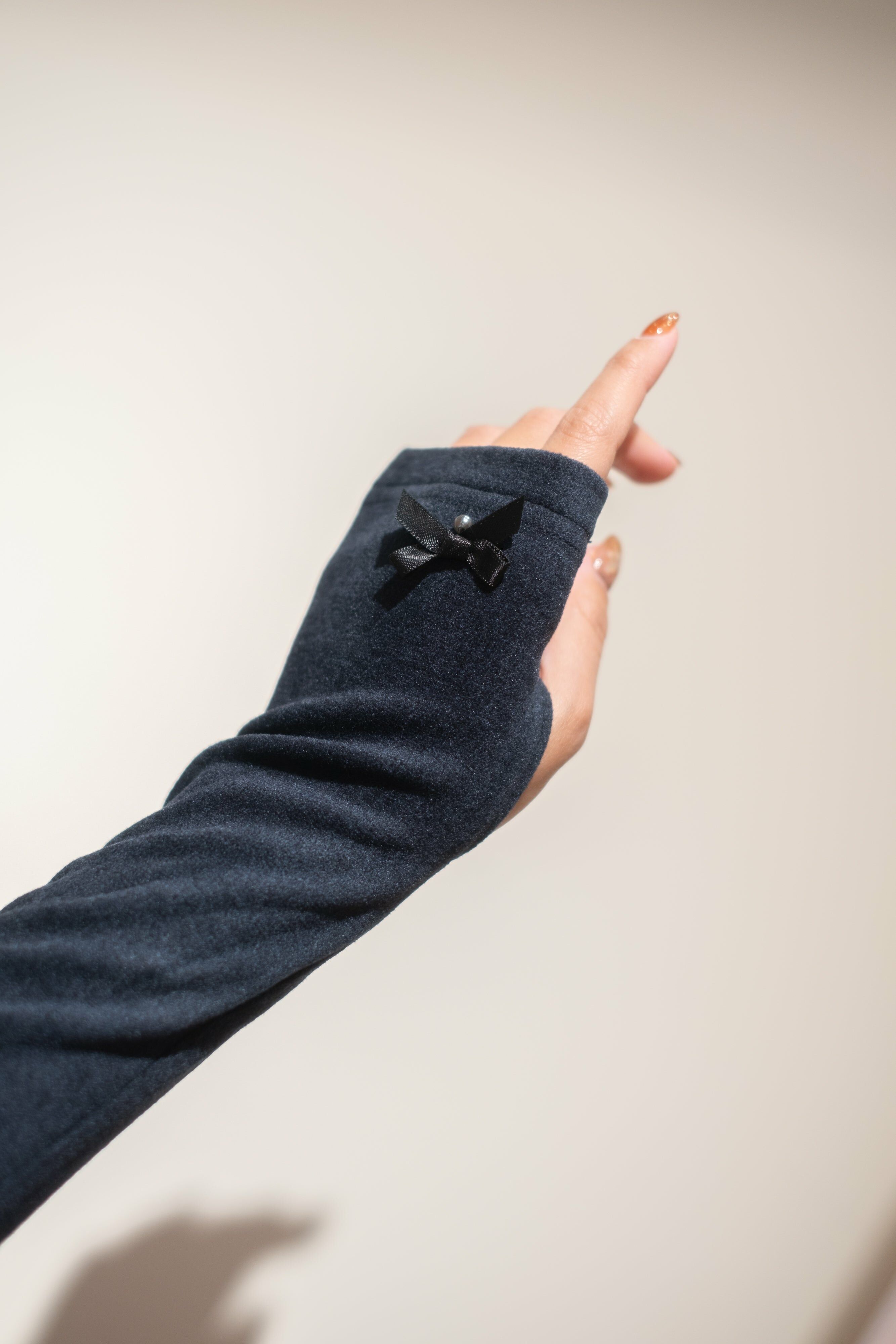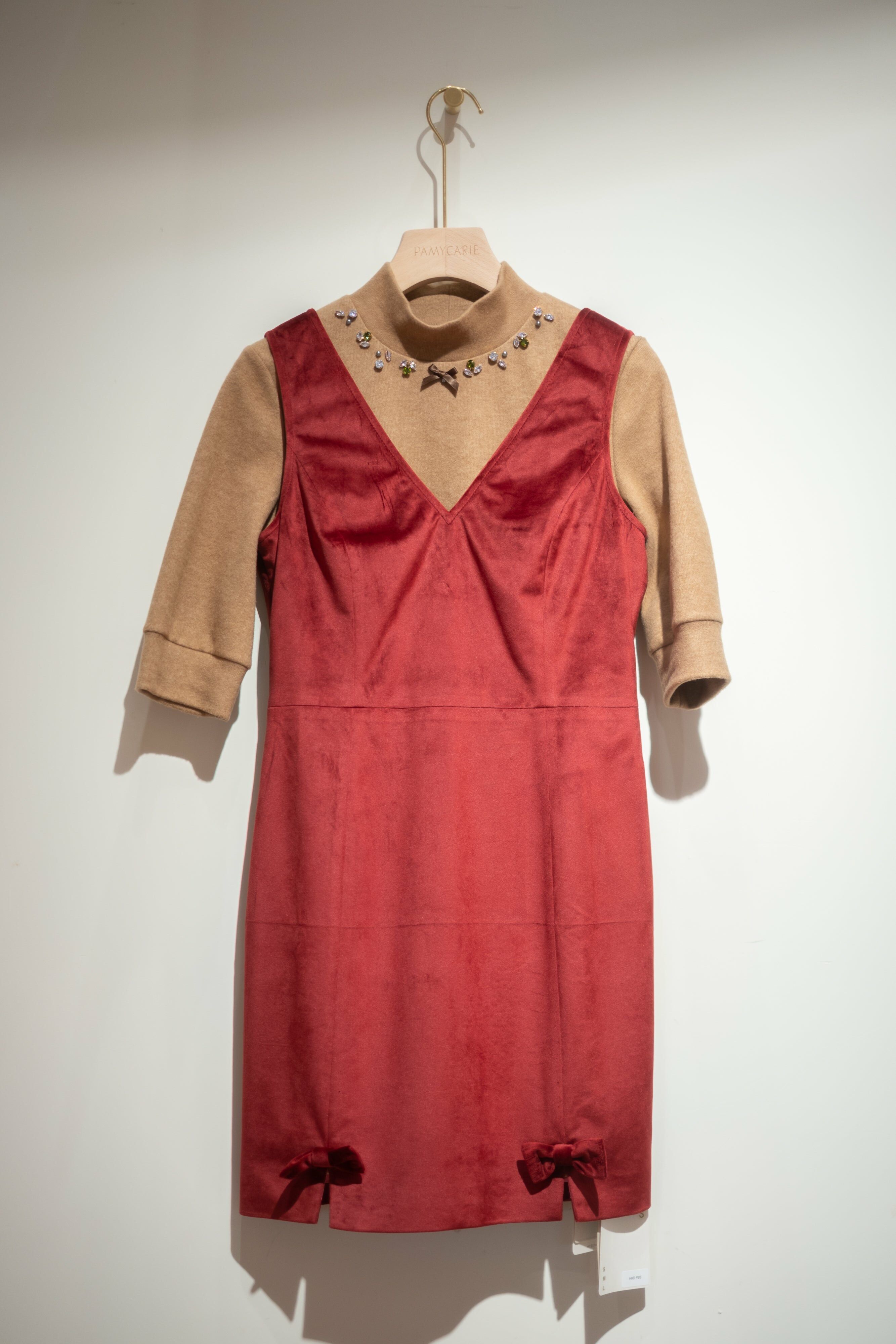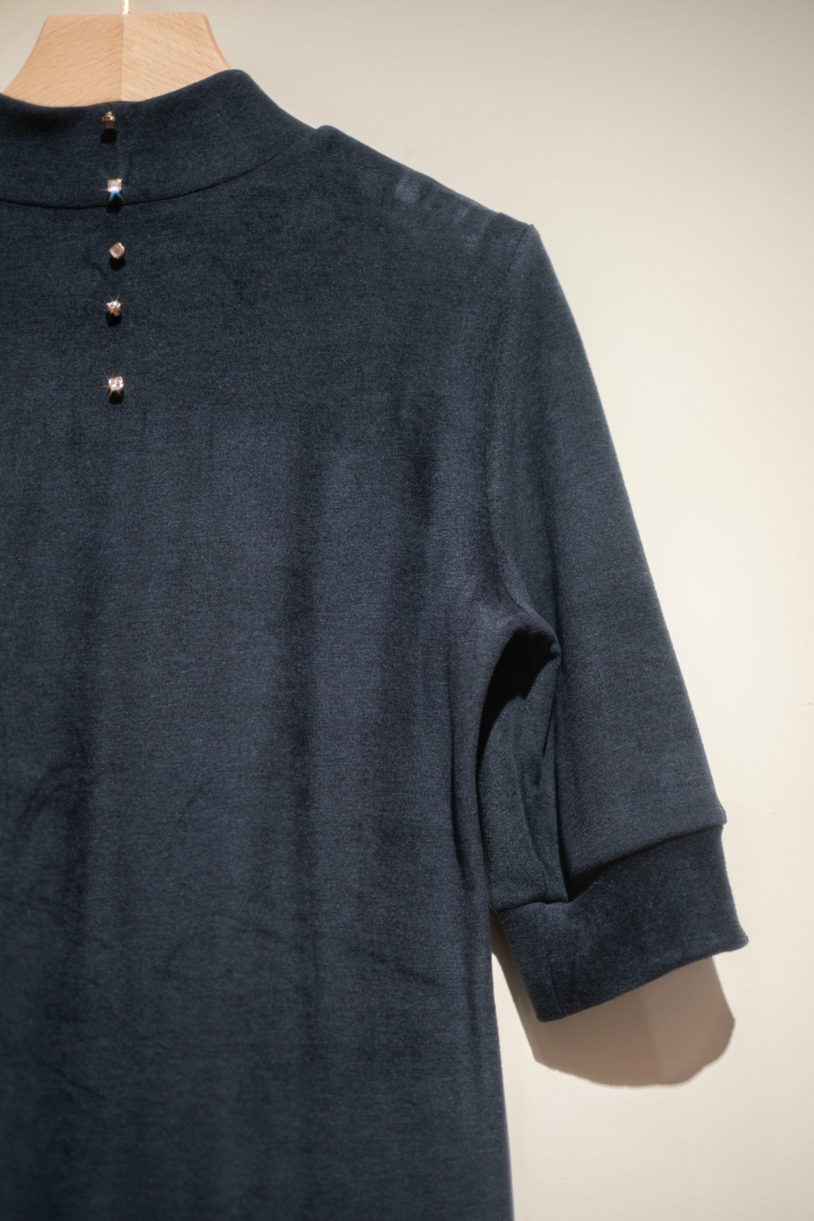 澎袖釘石連衣裙連手袖套 (灰藍色/卡其色)