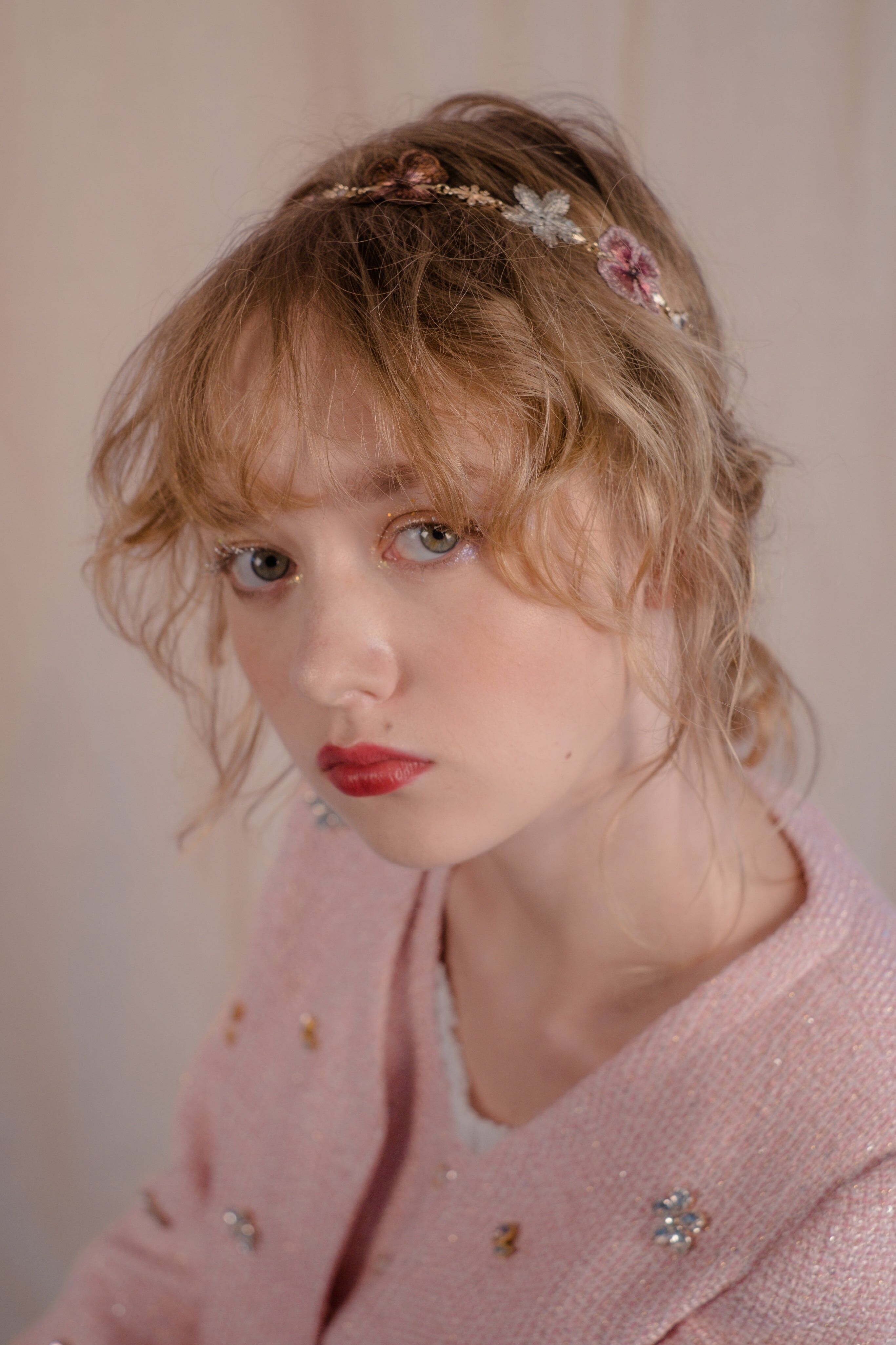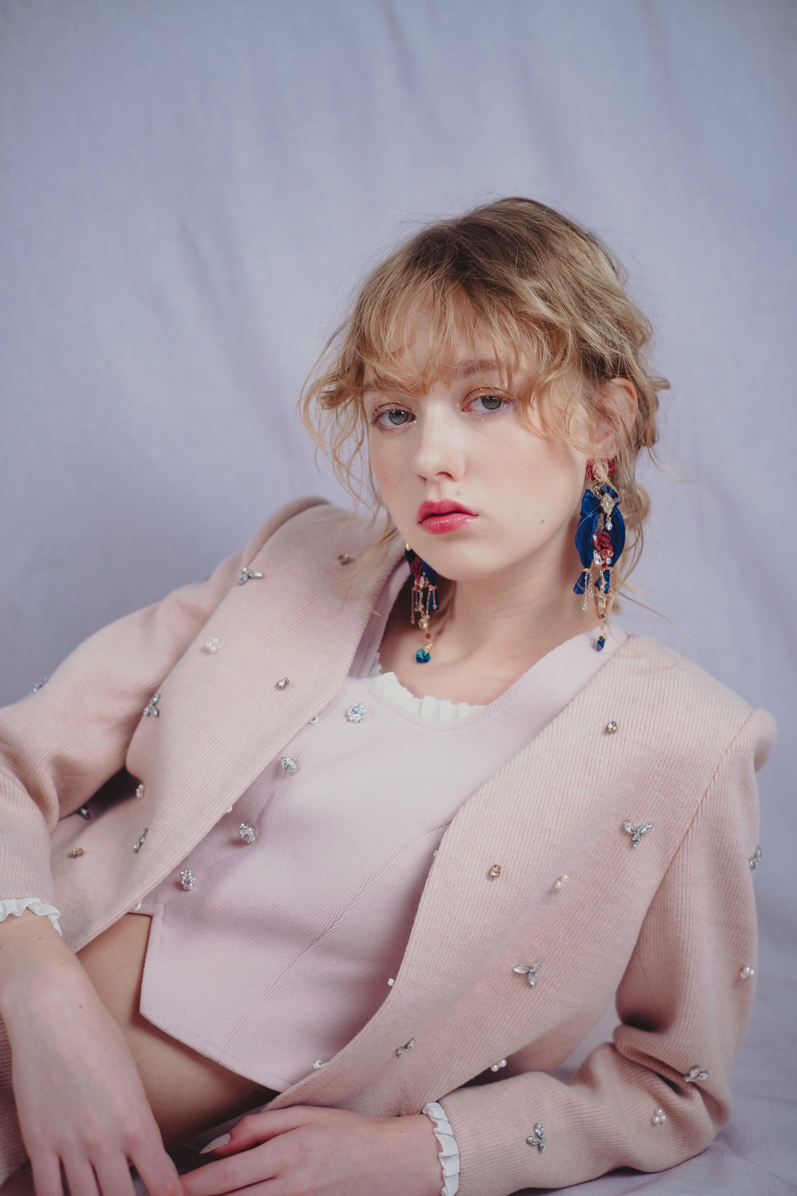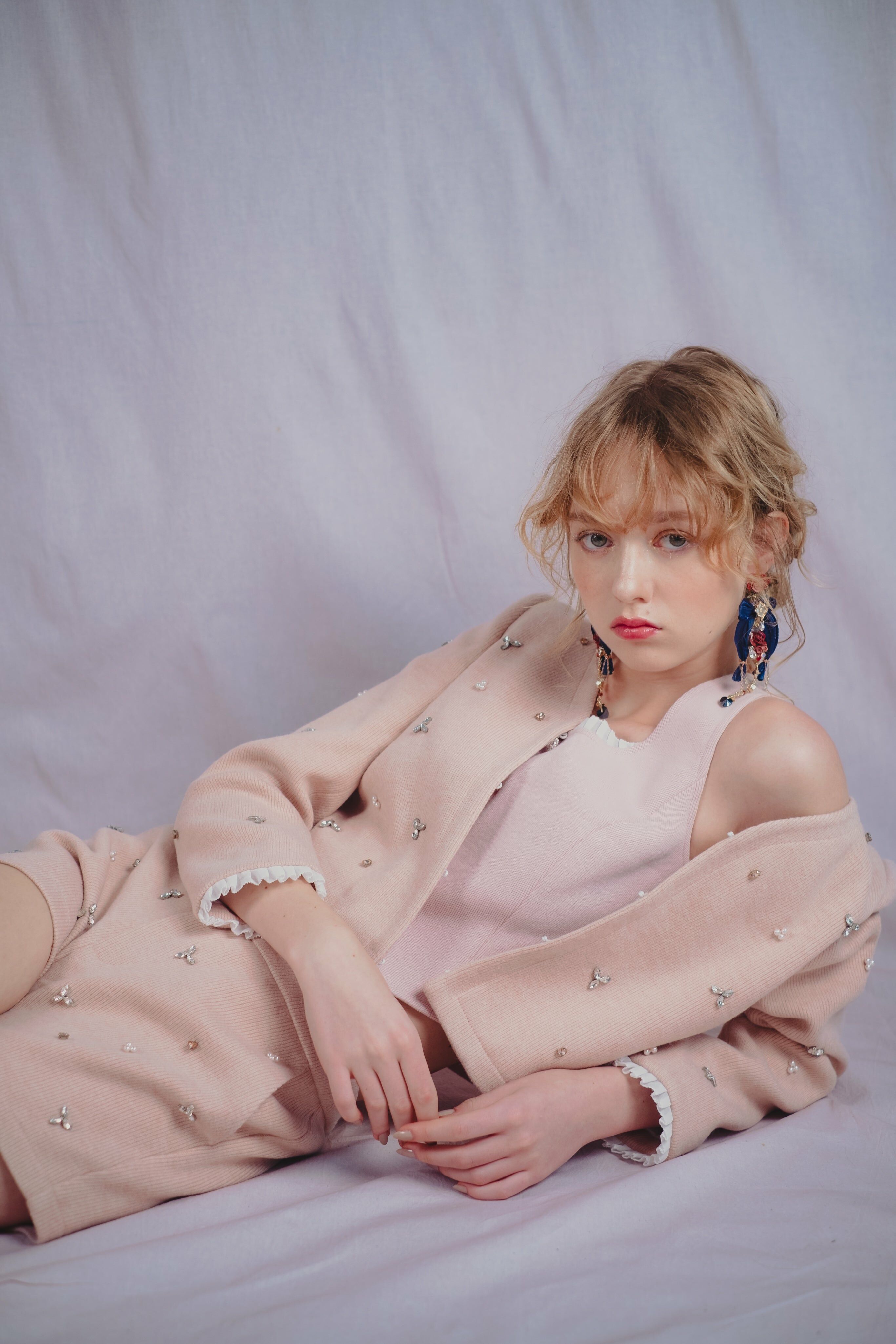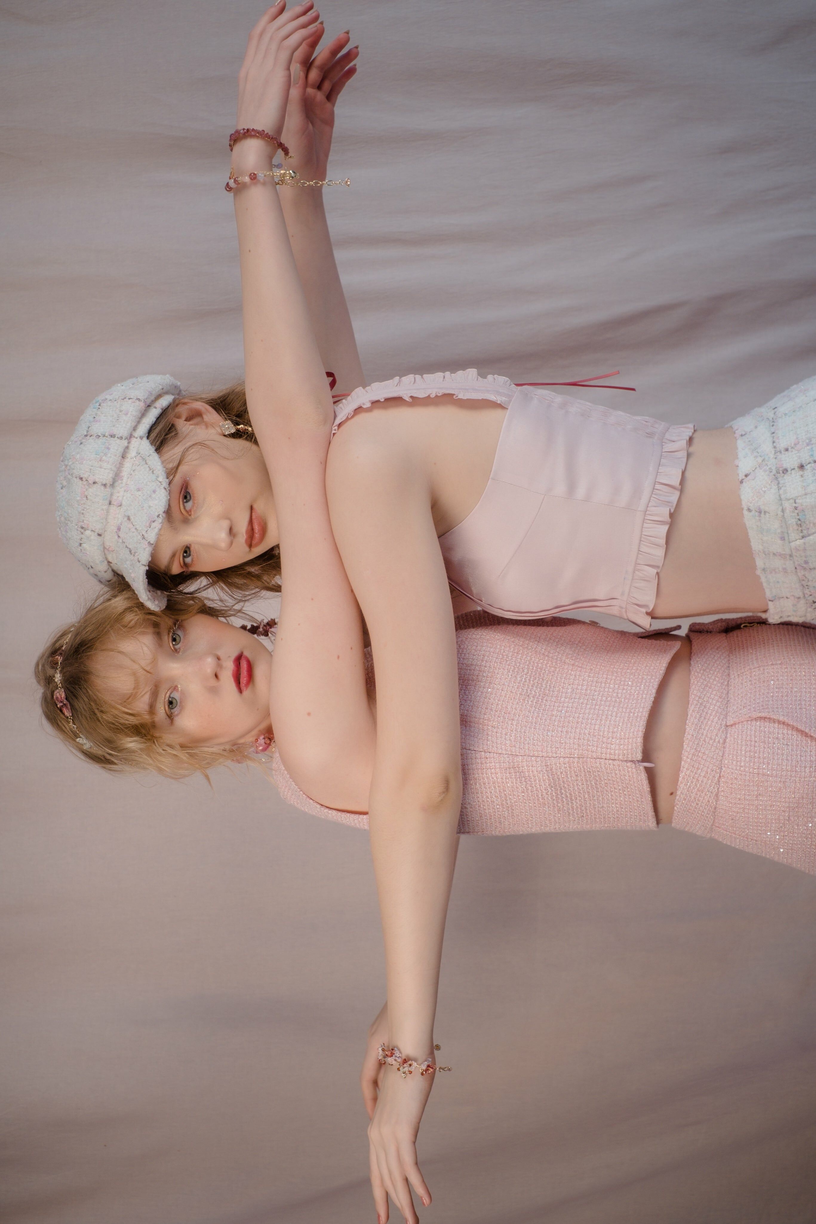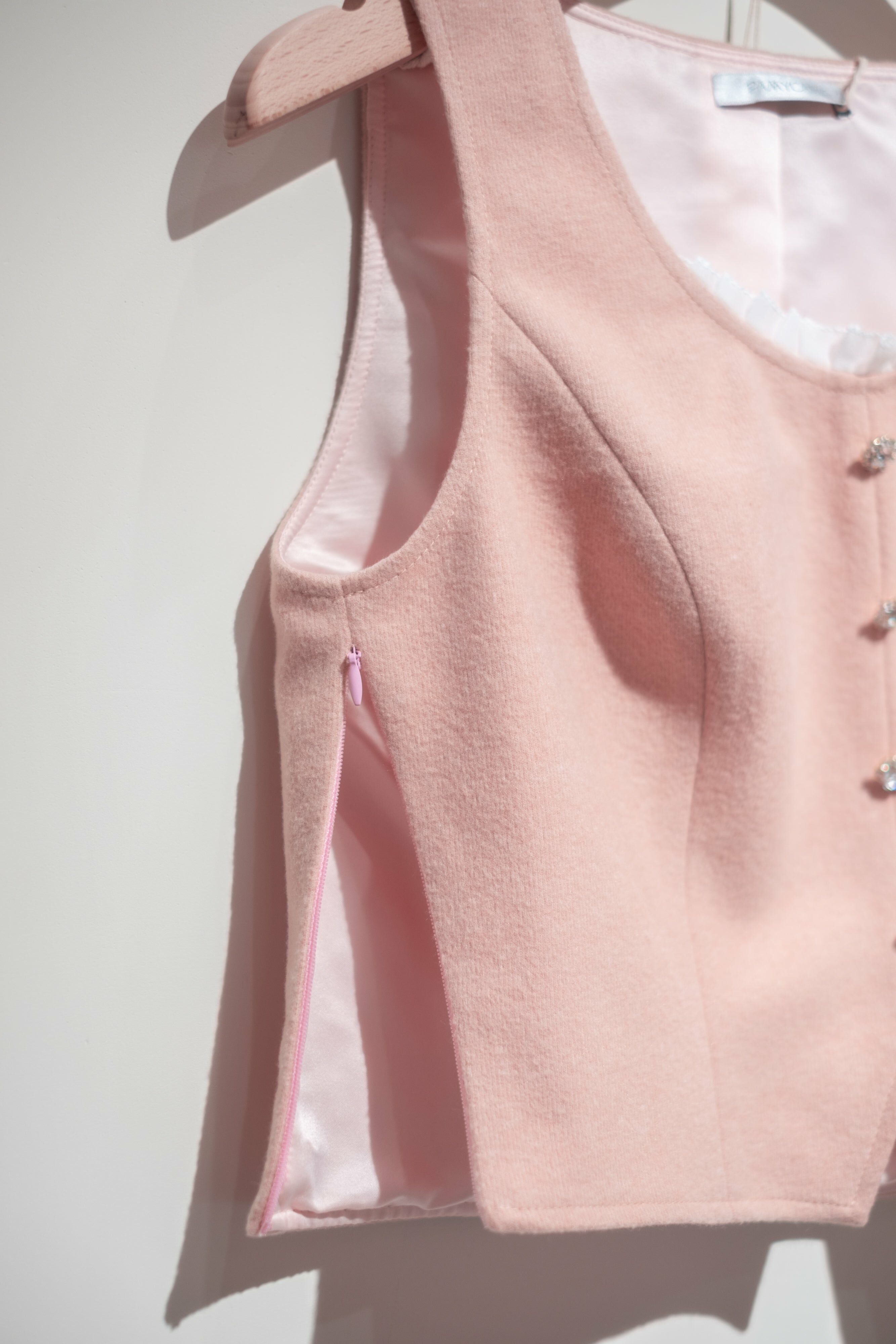 CZ Embroidered Tweed Jacket/Vest/Shorts (Pink/Black/Knit Dusty Pink)