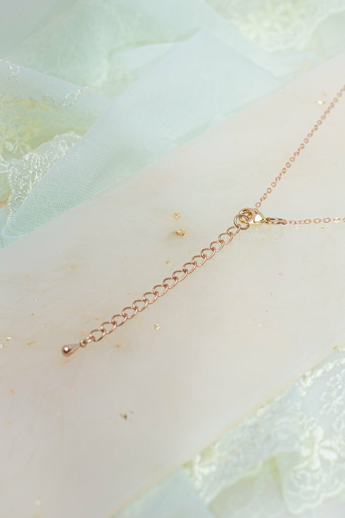 人手製作樹脂黏土花朵 | 固化保護層 | 施華洛世奇水晶 | 日本玻璃珠 | 台灣蕾絲絲帶 | 鍍18K玫瑰金S925純銀項鍊
