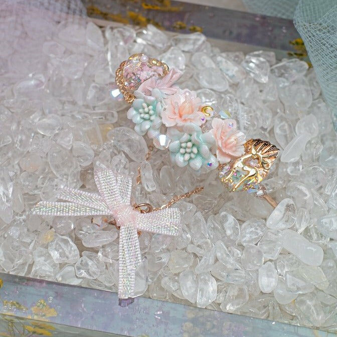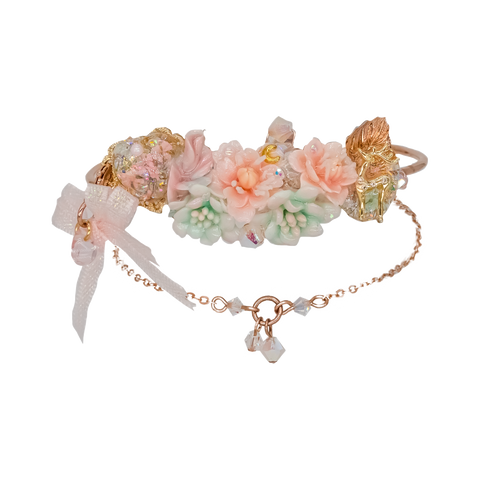 Handcrafted Cold Polymer Clay Flowers | UV hardening Protection Gel | Swarovski Crystal | Taiwanese Ribbon | 18K Rosegold-plated Metal Bangle | 18K Rosegold-plated S925 Bracelet