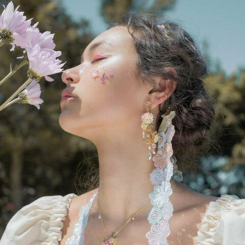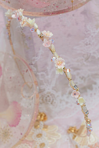 Handcrafted Cold Polymer Clay Flowers | UV hardening Protection Gel | Swarovski Crystal | Taiwanese Lace Ribbon | 14K Gold-plated Tiara | 14K Gold-plated S925 Chain