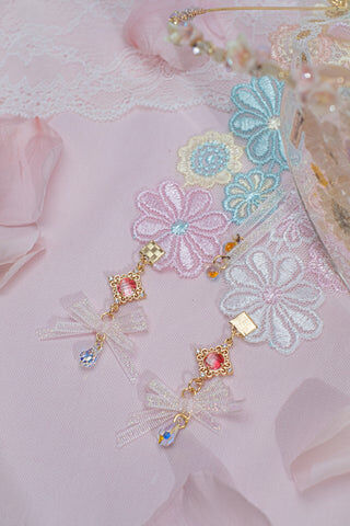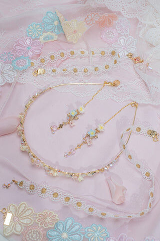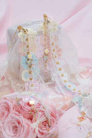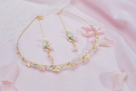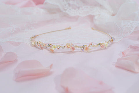 人手製作樹脂黏土花朵 | 固化保護層 | 施華洛世奇水晶 | 日本玻璃珠 | 台灣蕾絲絲帶 | 鍍14K金髮箍 | 鍍14K金S925純銀鍊
