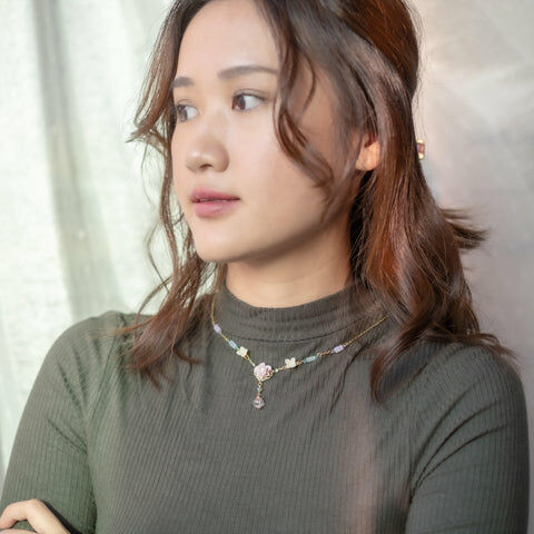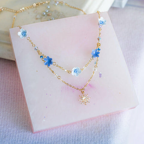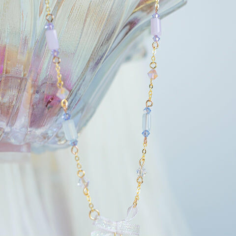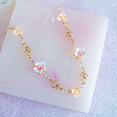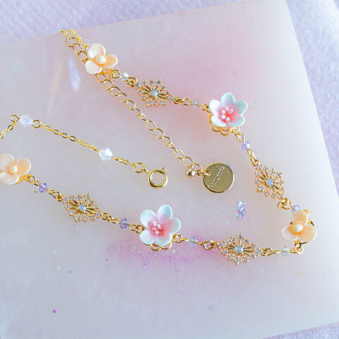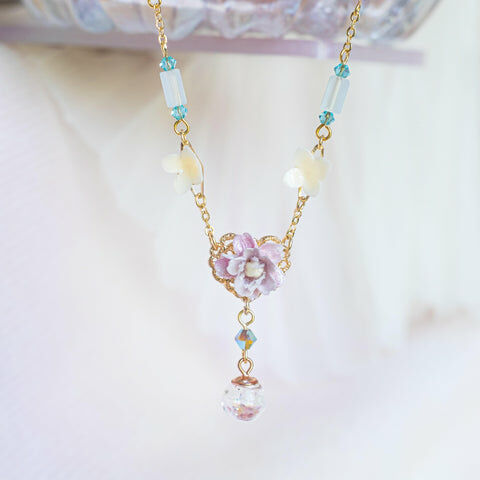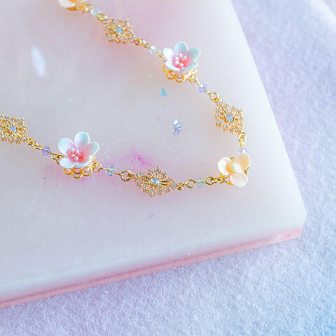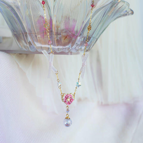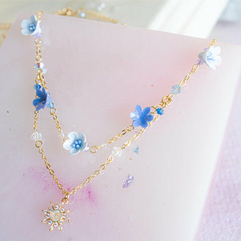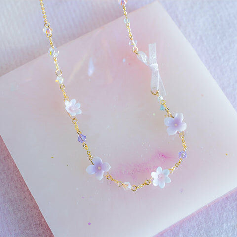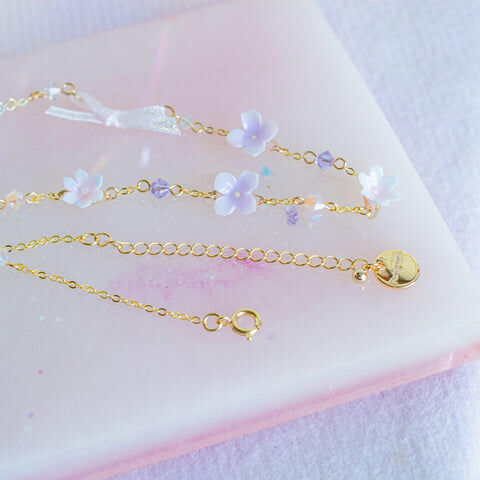 鍍金線 | 施華洛世奇水晶 | 手製樹脂黏土花 | UV膠強化保護層 | 925純銀項鏈