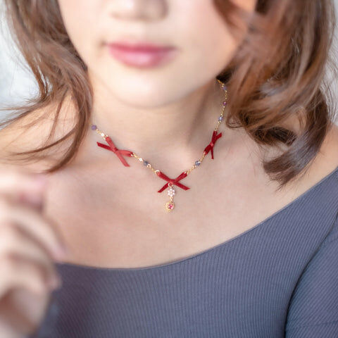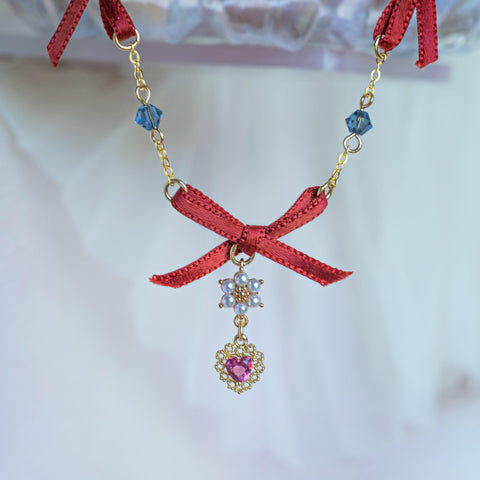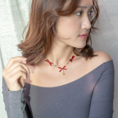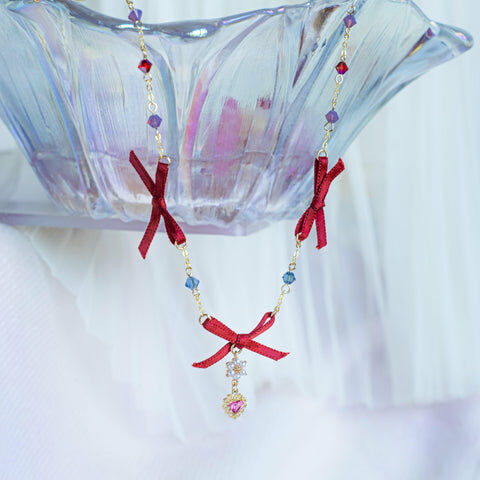 Design 3 - 酒紅愛心蝴蝶結S925鎖骨鏈