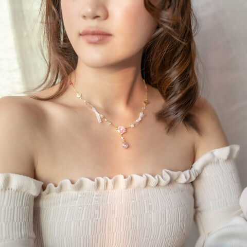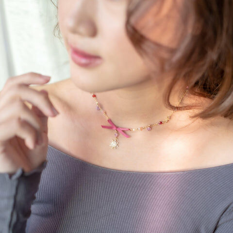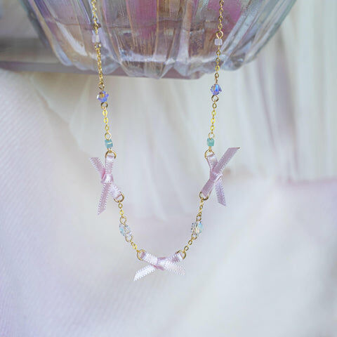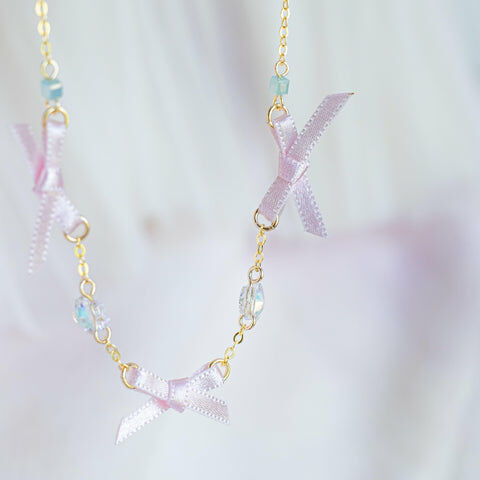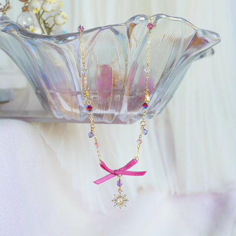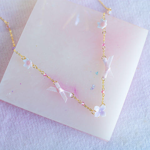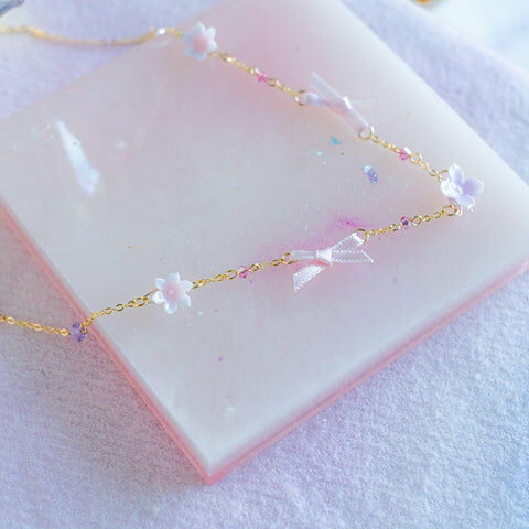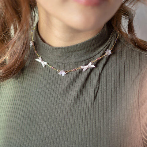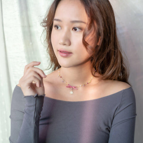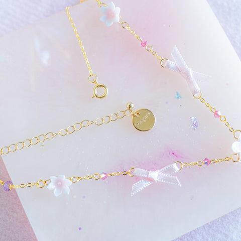 Design 6 - 櫻花粉蝴蝶結S925鎖骨鏈
