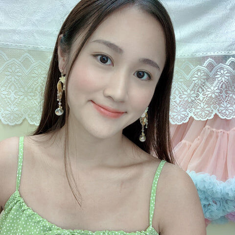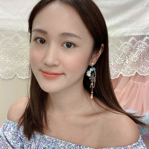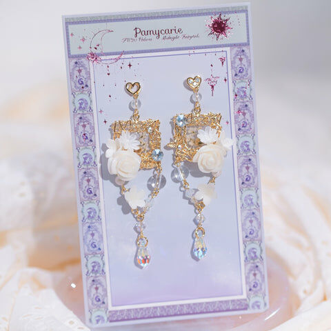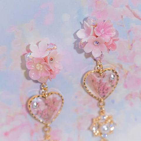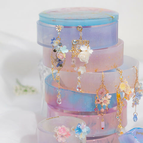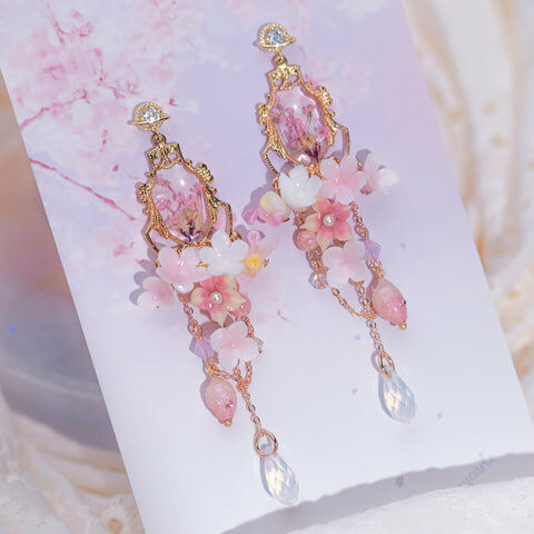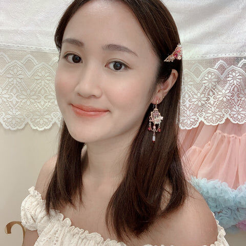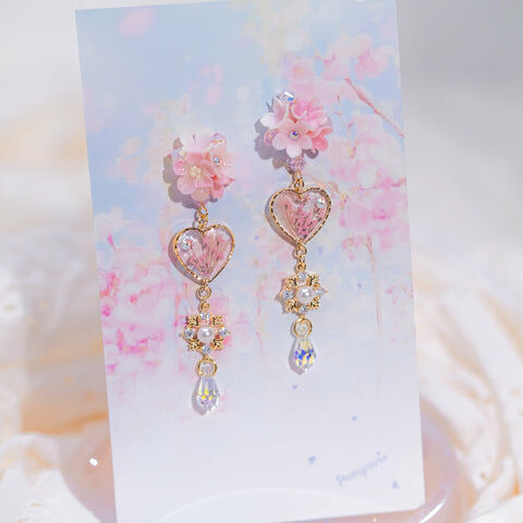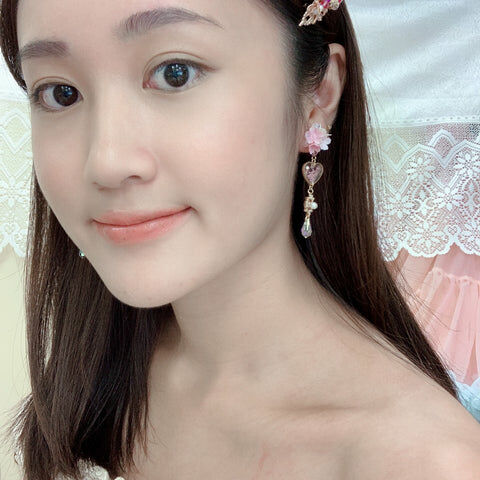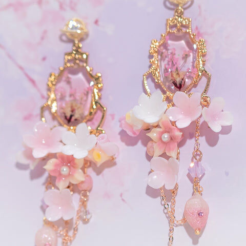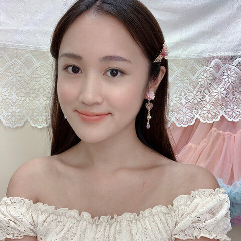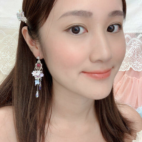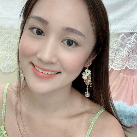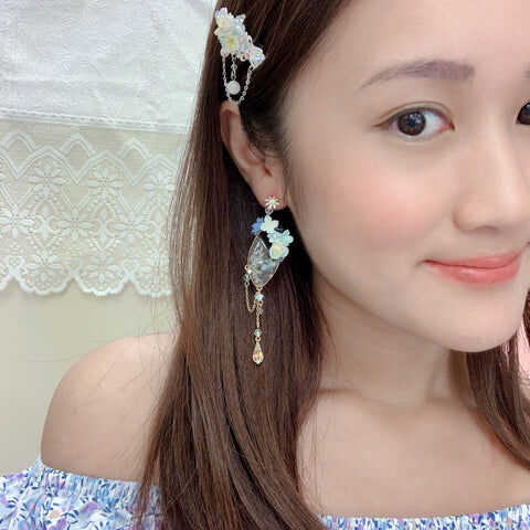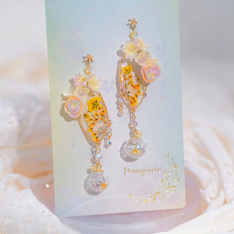 鍍金線 | 施華洛世奇水晶 | 手製樹脂黏土花 | UV膠強化保護層 | 太空金屬耳針