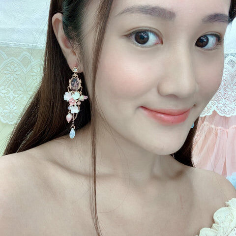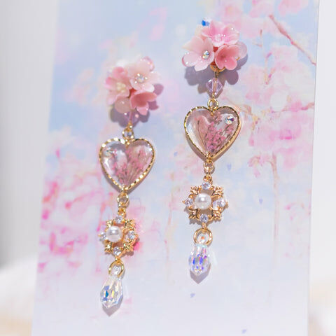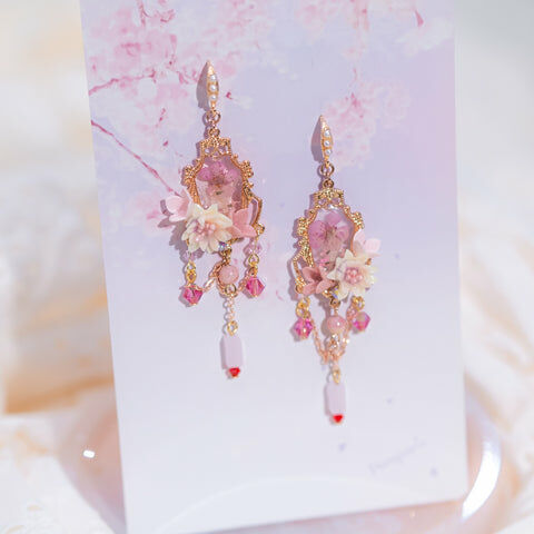 Design 4 - 柔粉草苺珊瑚乾花吊燈耳環