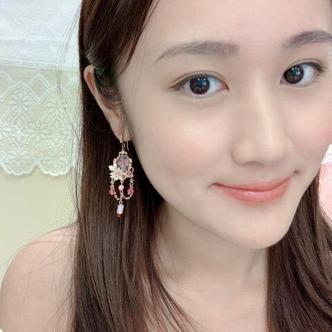 Design 3 - 紫玫之吻乾花吊燈耳環