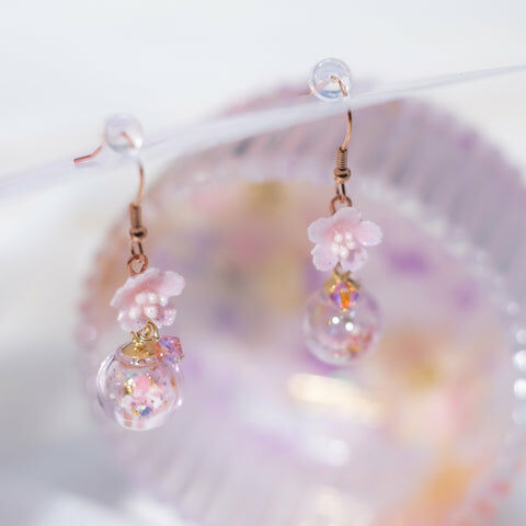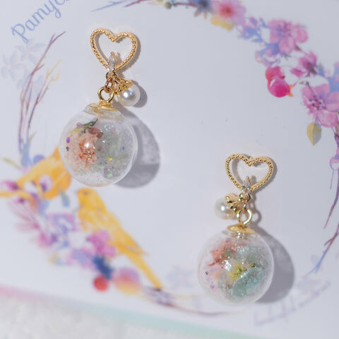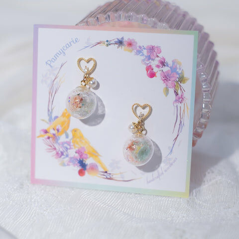 鍍金線 | 施華洛世奇水晶 | 手製樹脂黏土花 | UV膠強化保護層 | 鍍金925純銀耳釘
