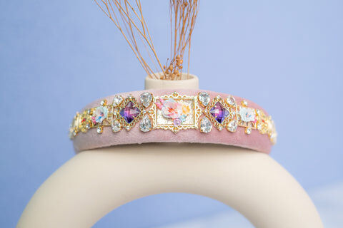 從80年代開始流行的髮箍,近年又次成為各大品牌的寵兒。復古感絲絨布料加上手縫色彩繽紛的迷你畫框,讓人彷如進入異國度的中古畫廊, 配上簡單的長髮或低馬尾造型已是出類拔萃。