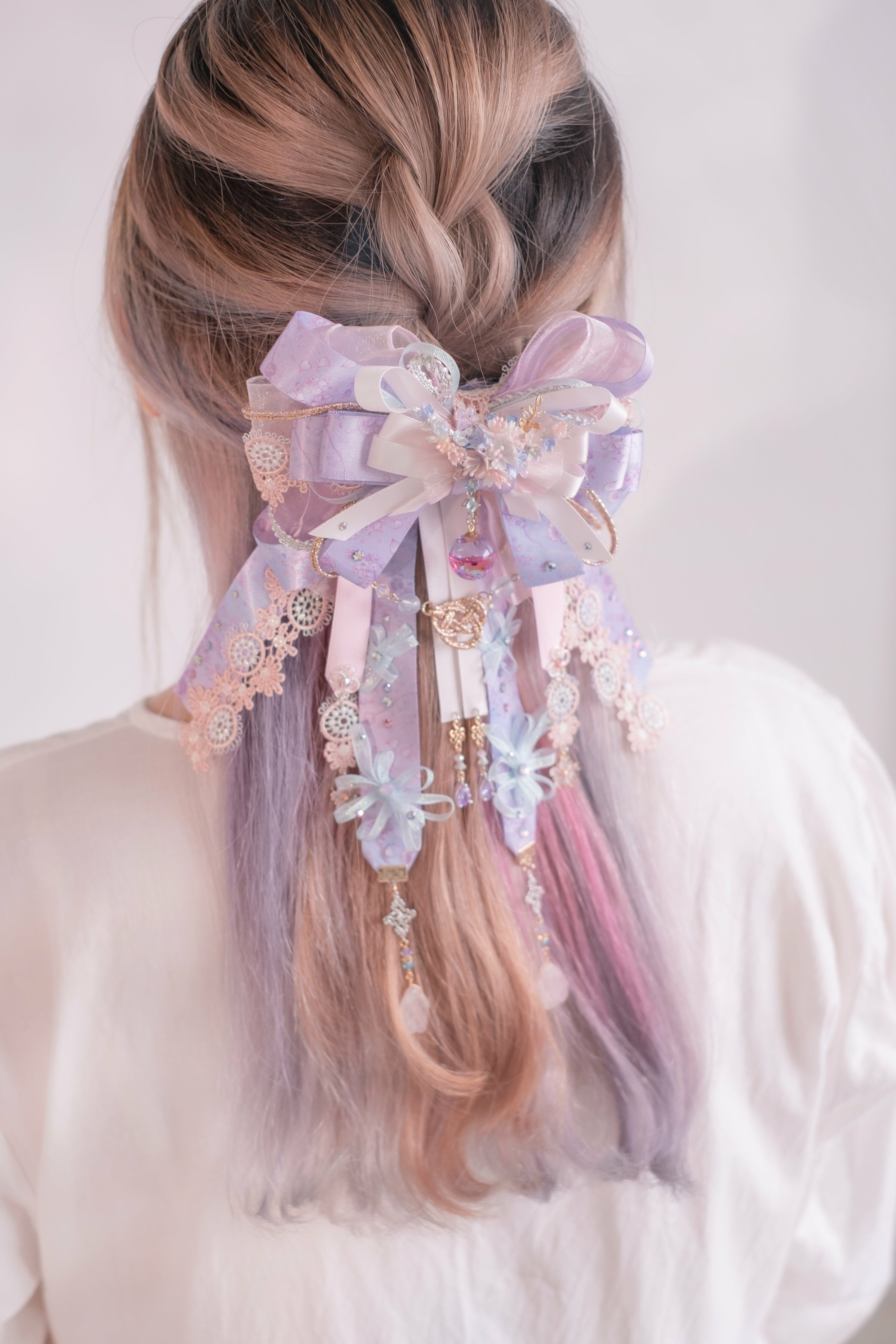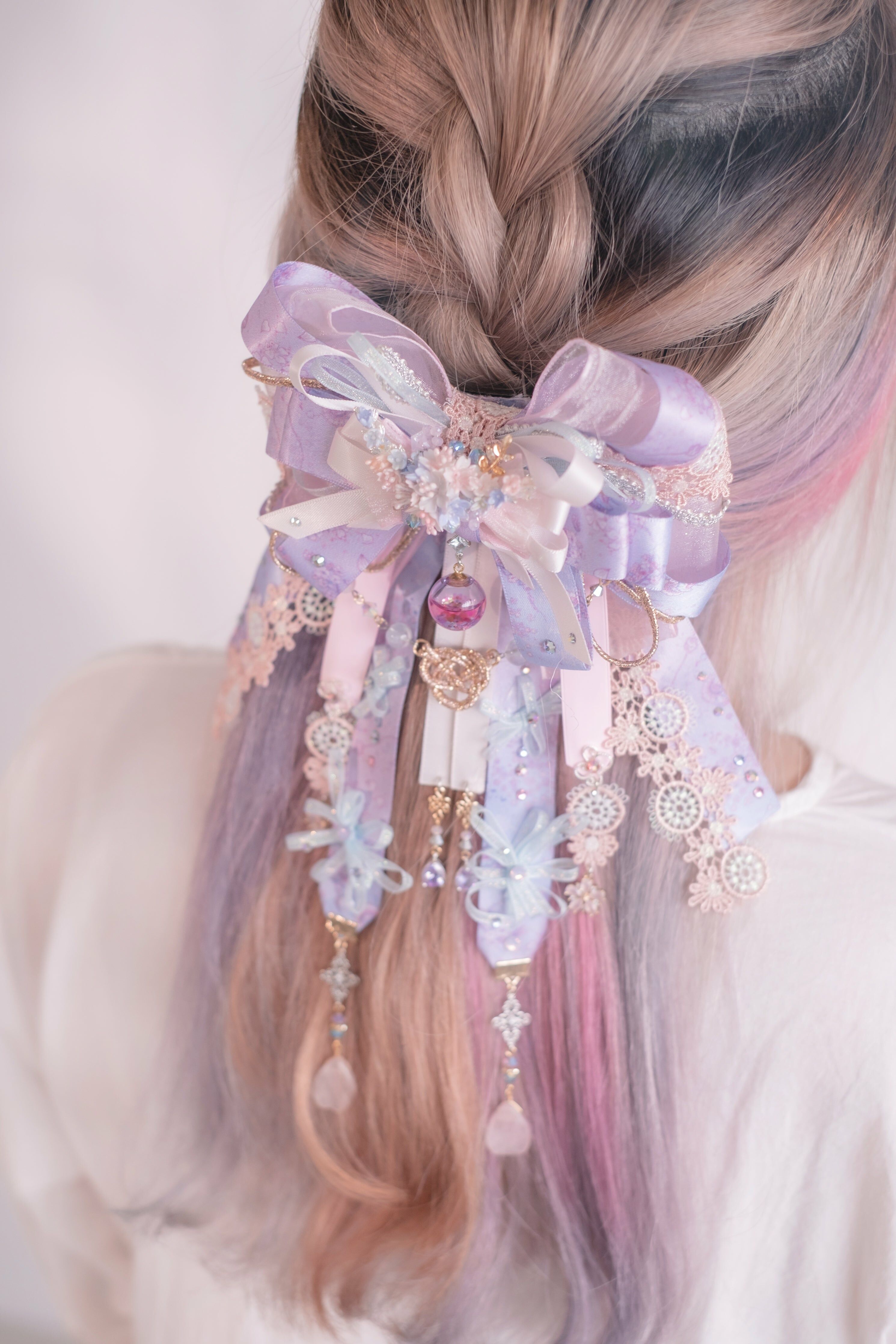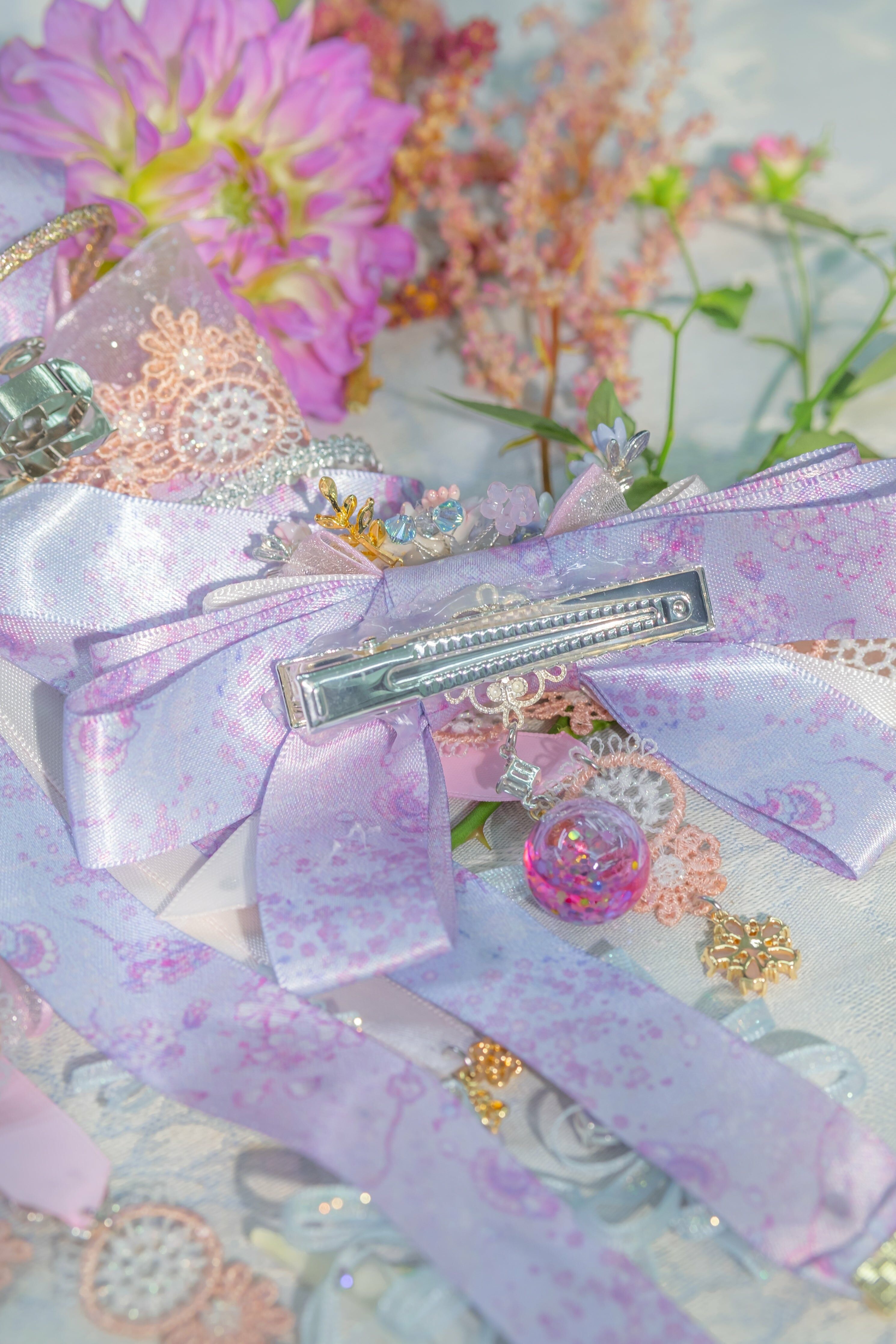 (the large ribbon base is a barrette Carrie Clip while the small detachable bow is a duckbill clip)