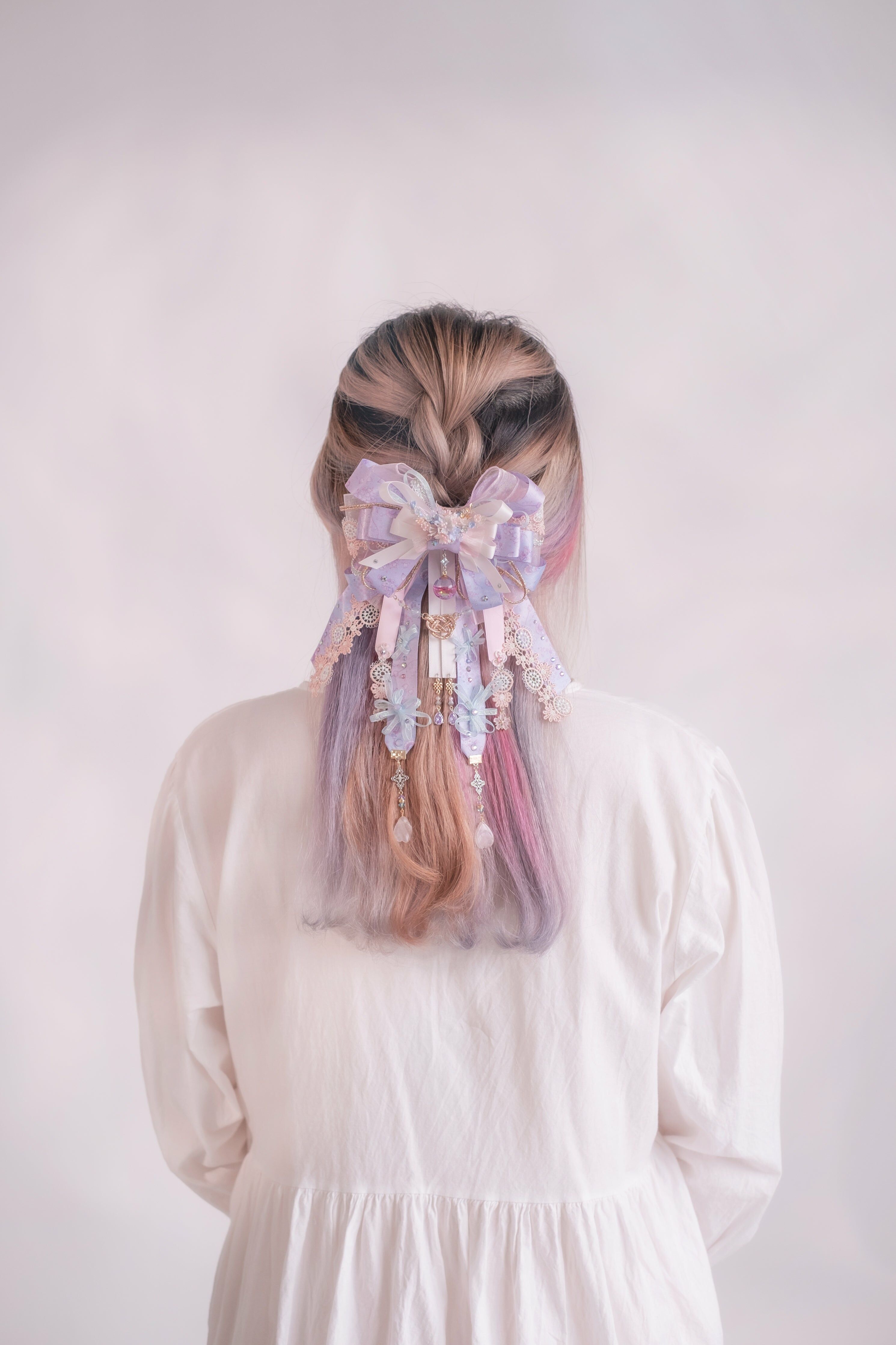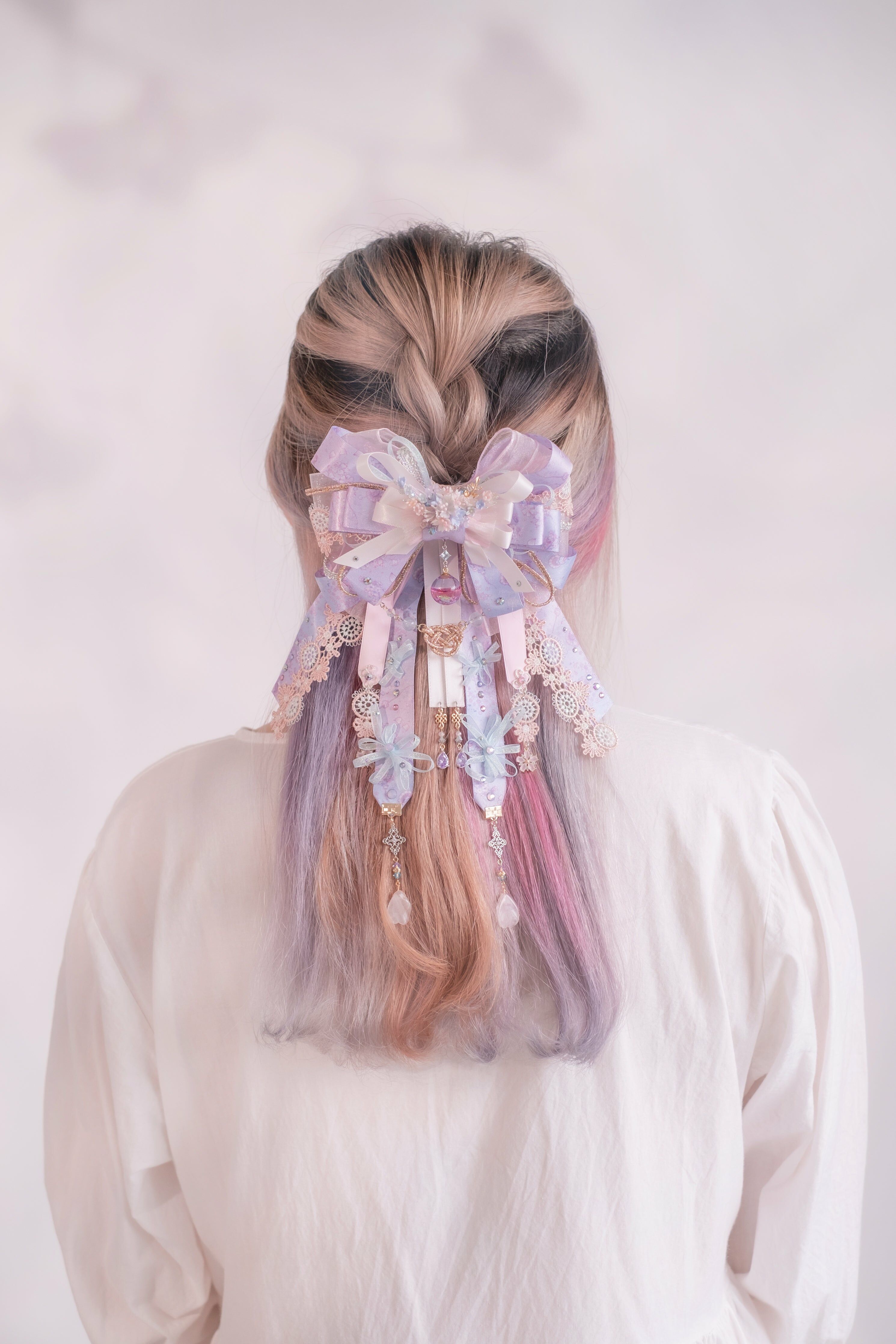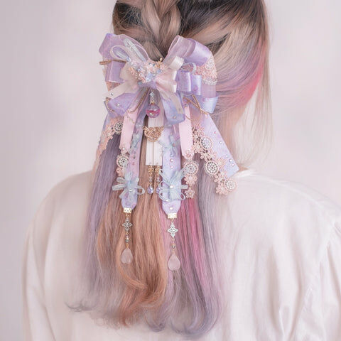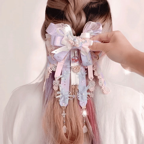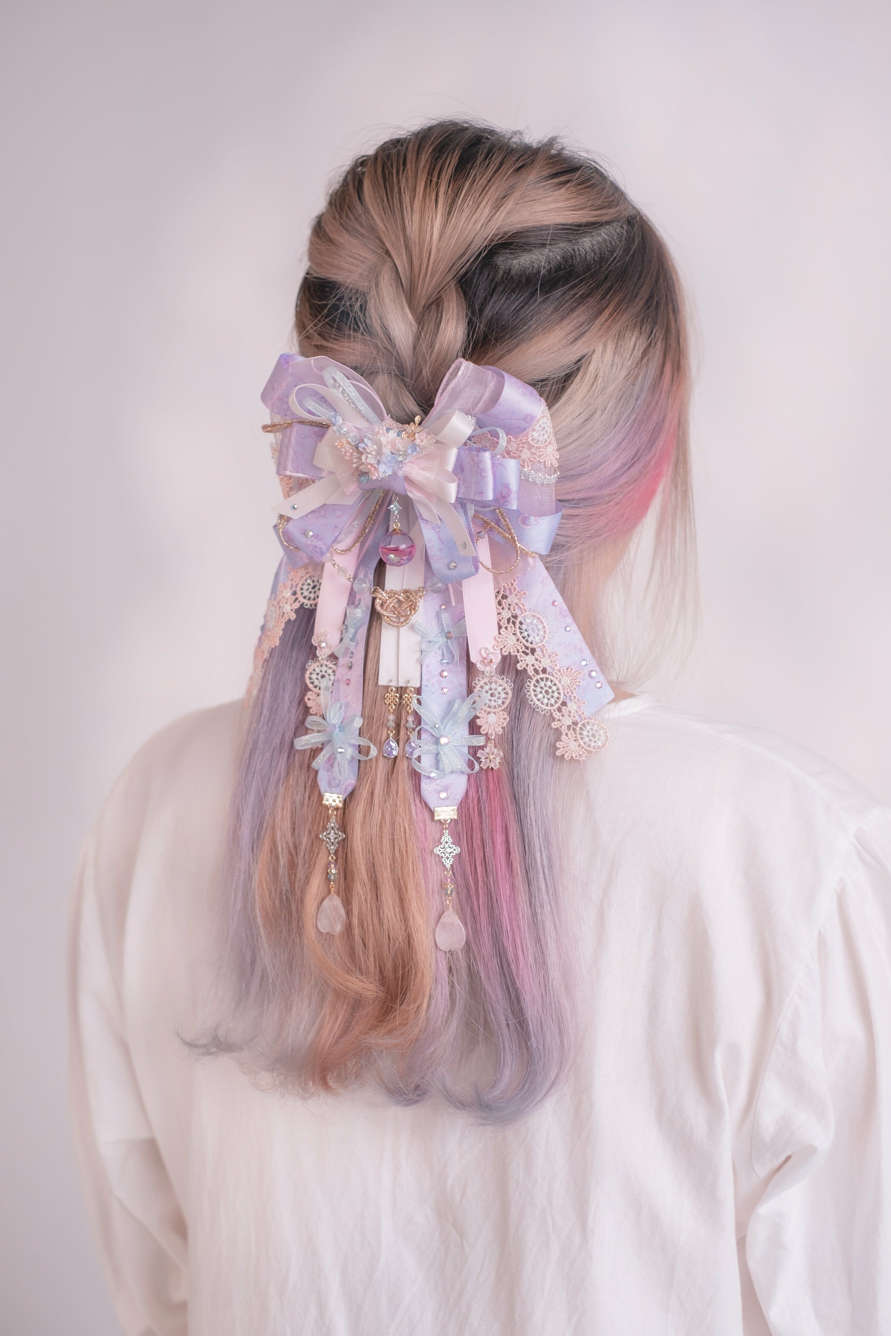 (the large ribbon base is a barrette Carrie Clip while the small detachable bow is a duckbill clip)