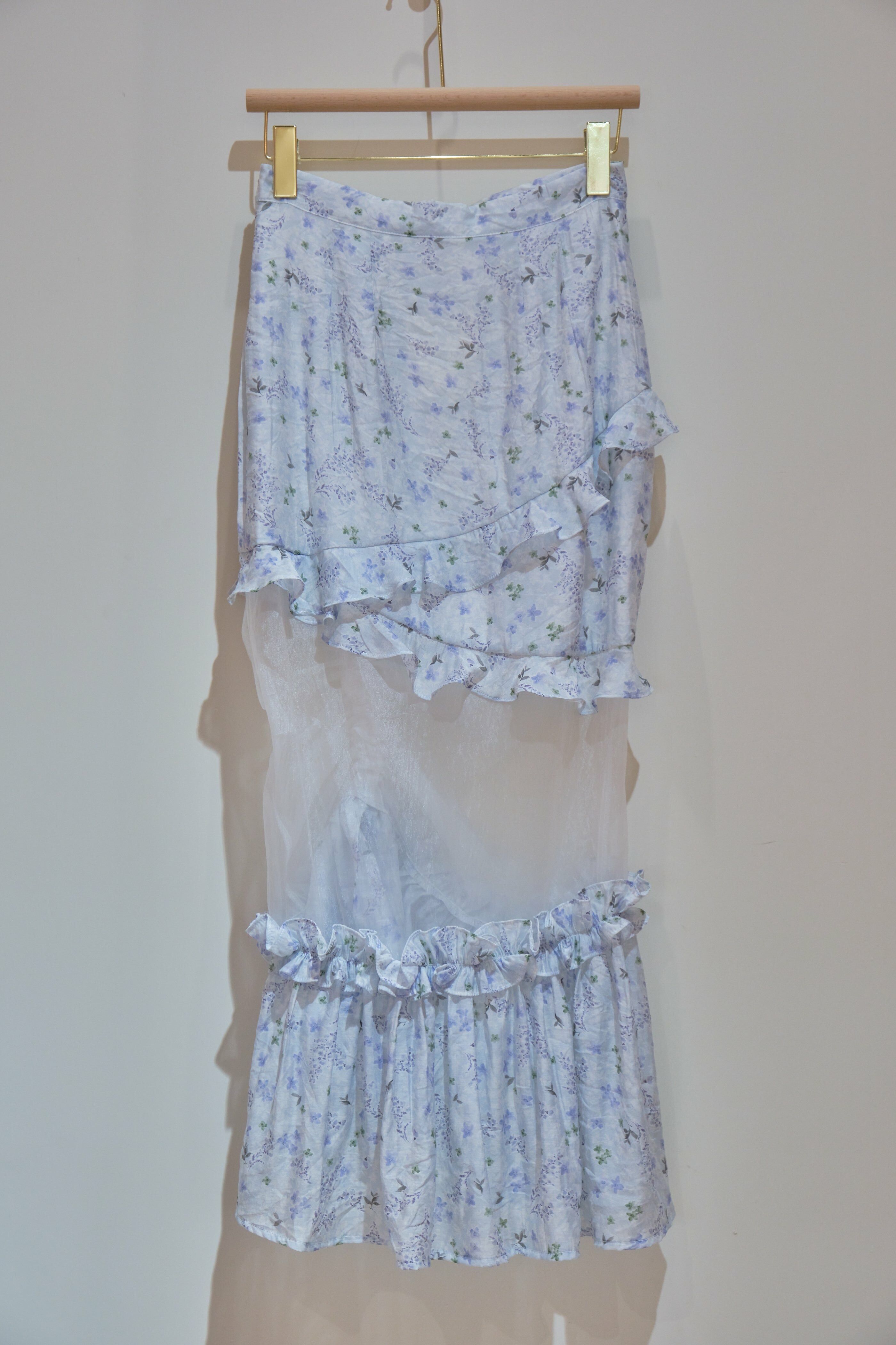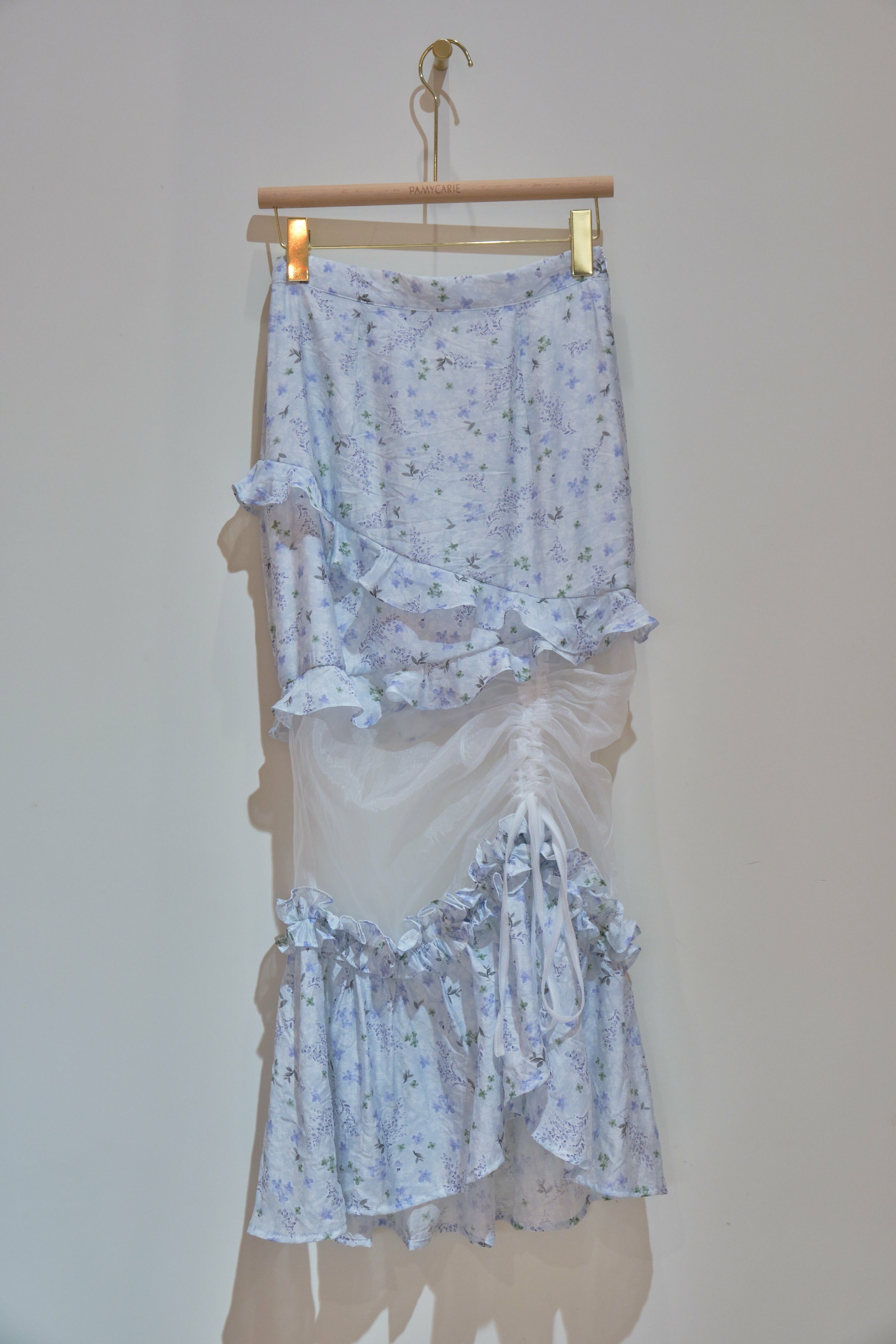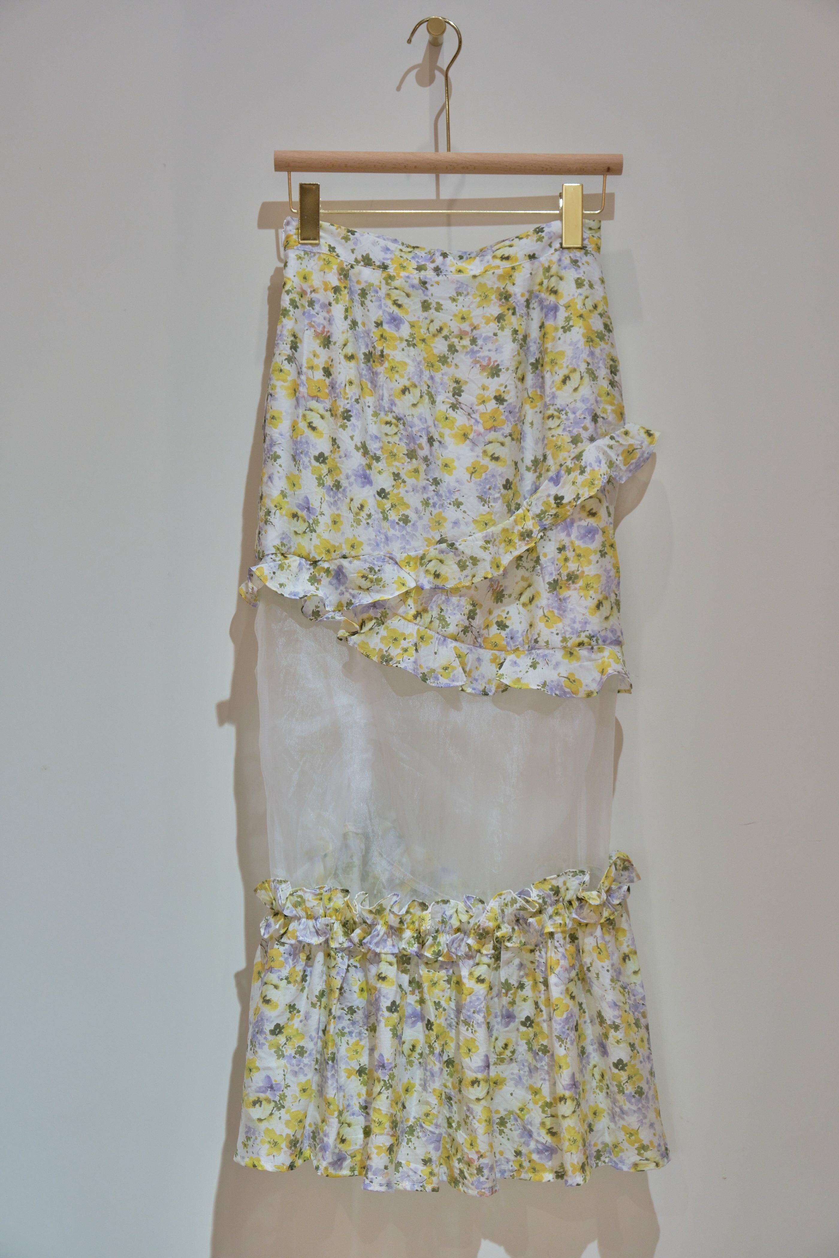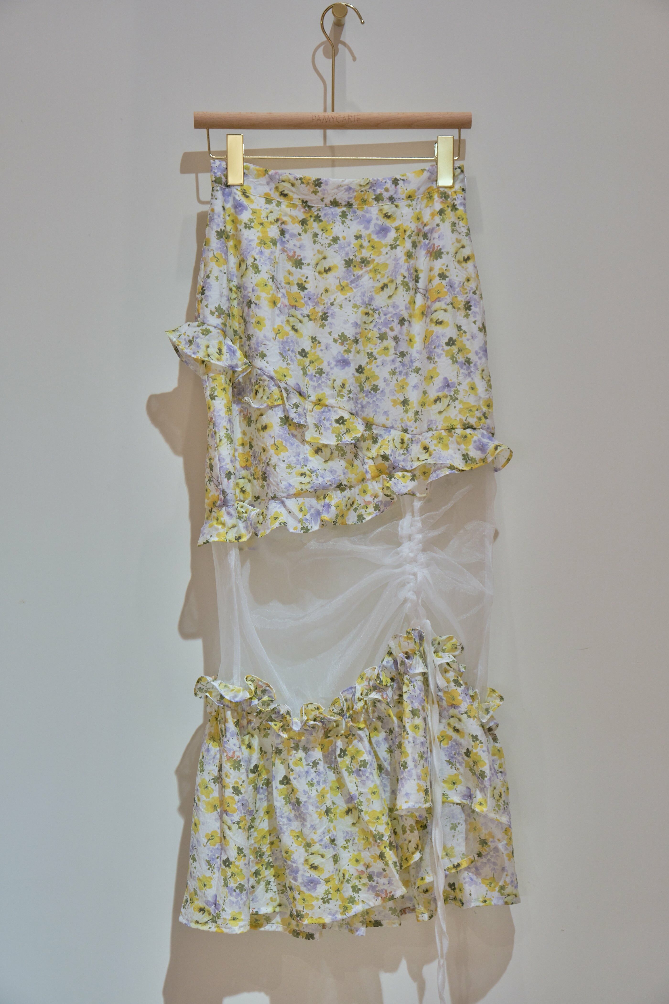 Floral Chiffon 2-Way Mermaid Drawstring Skirt (Yellow/Blue)