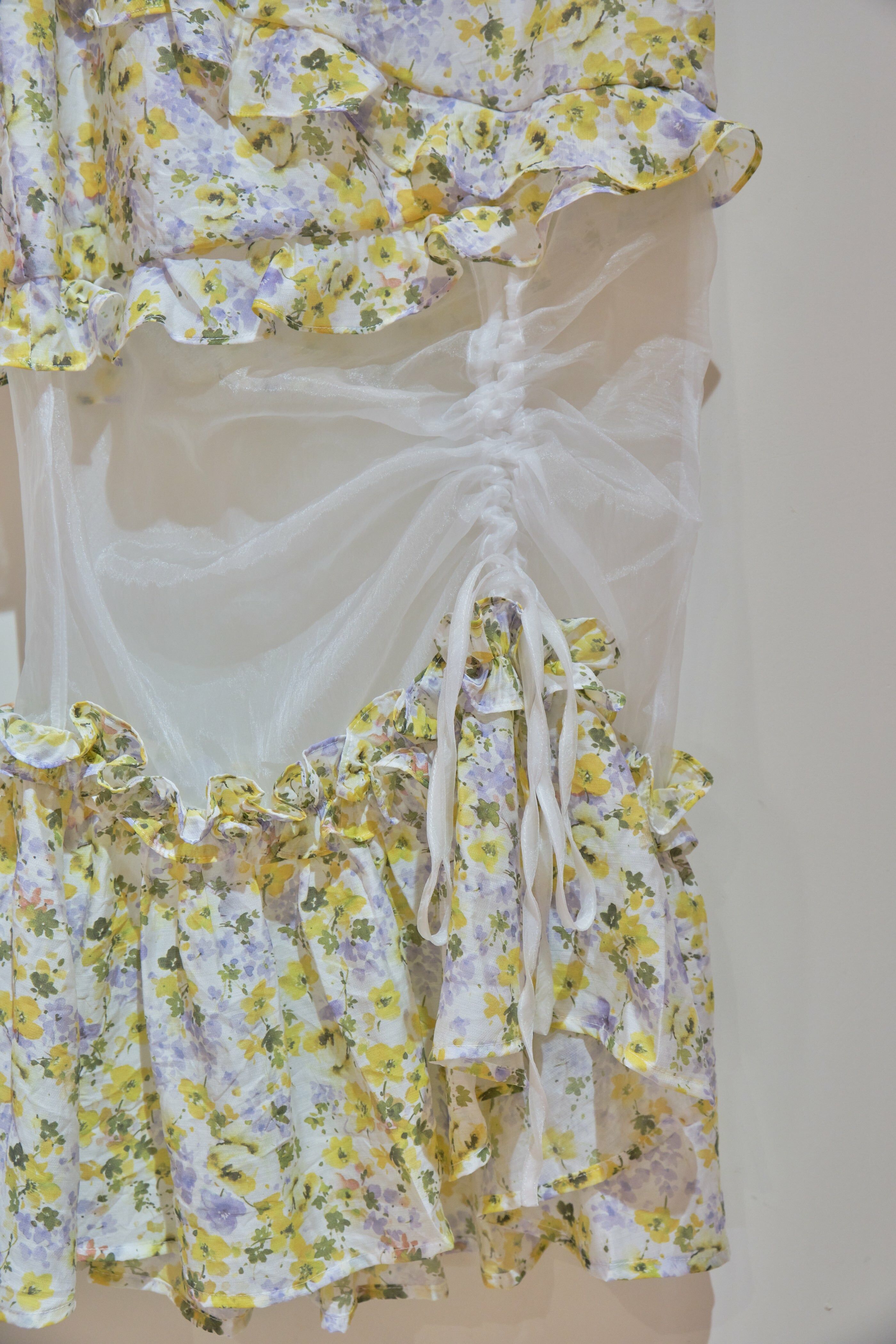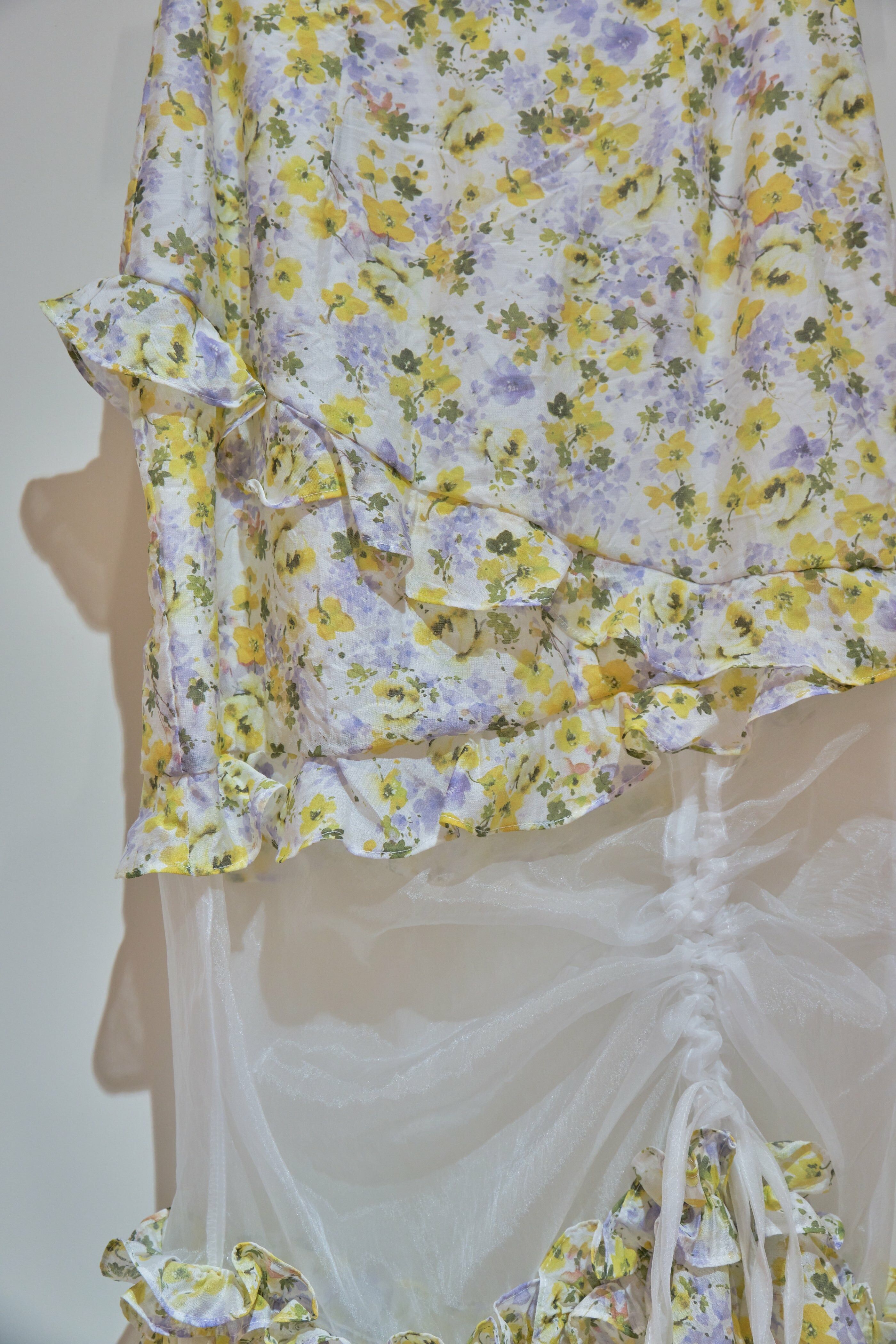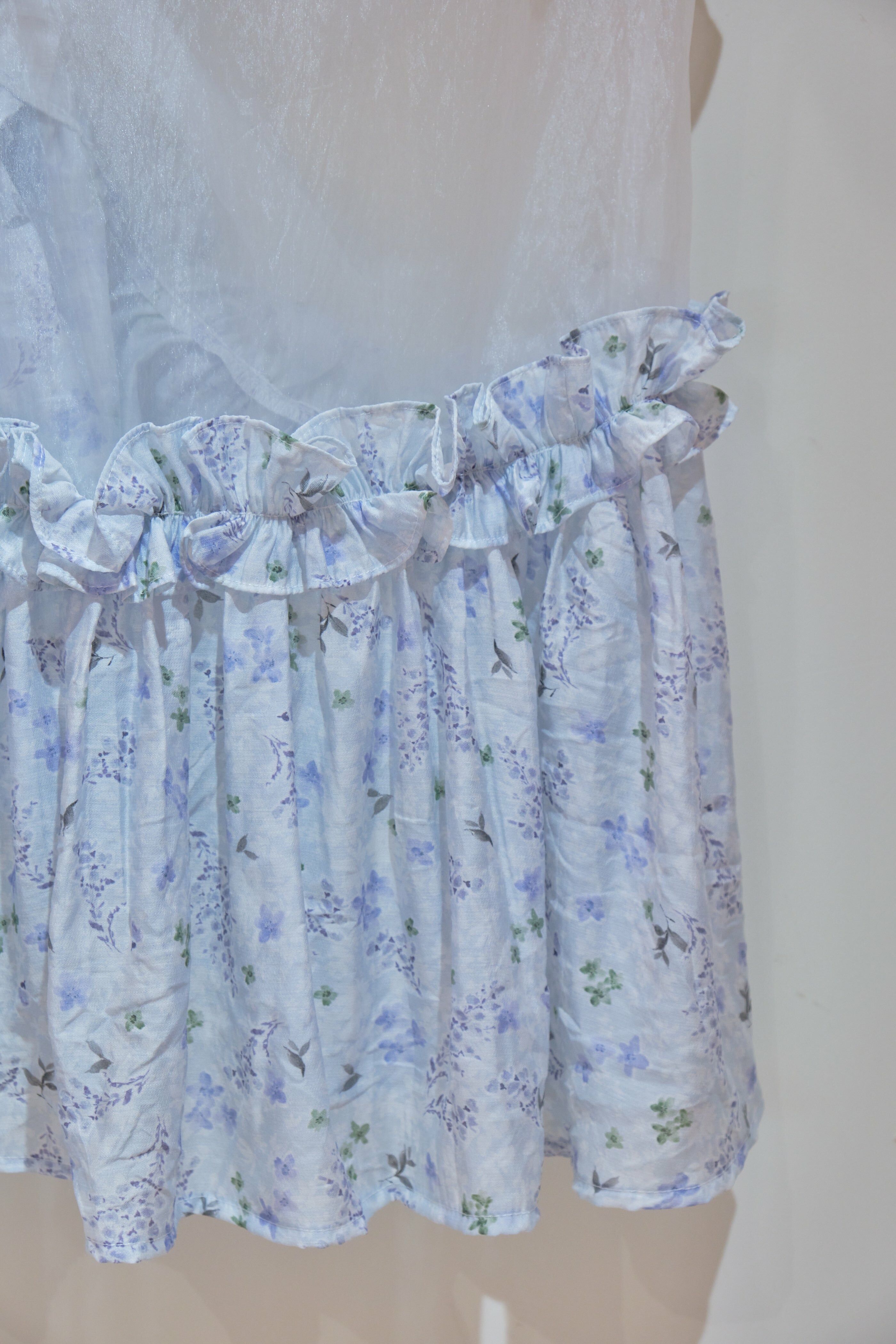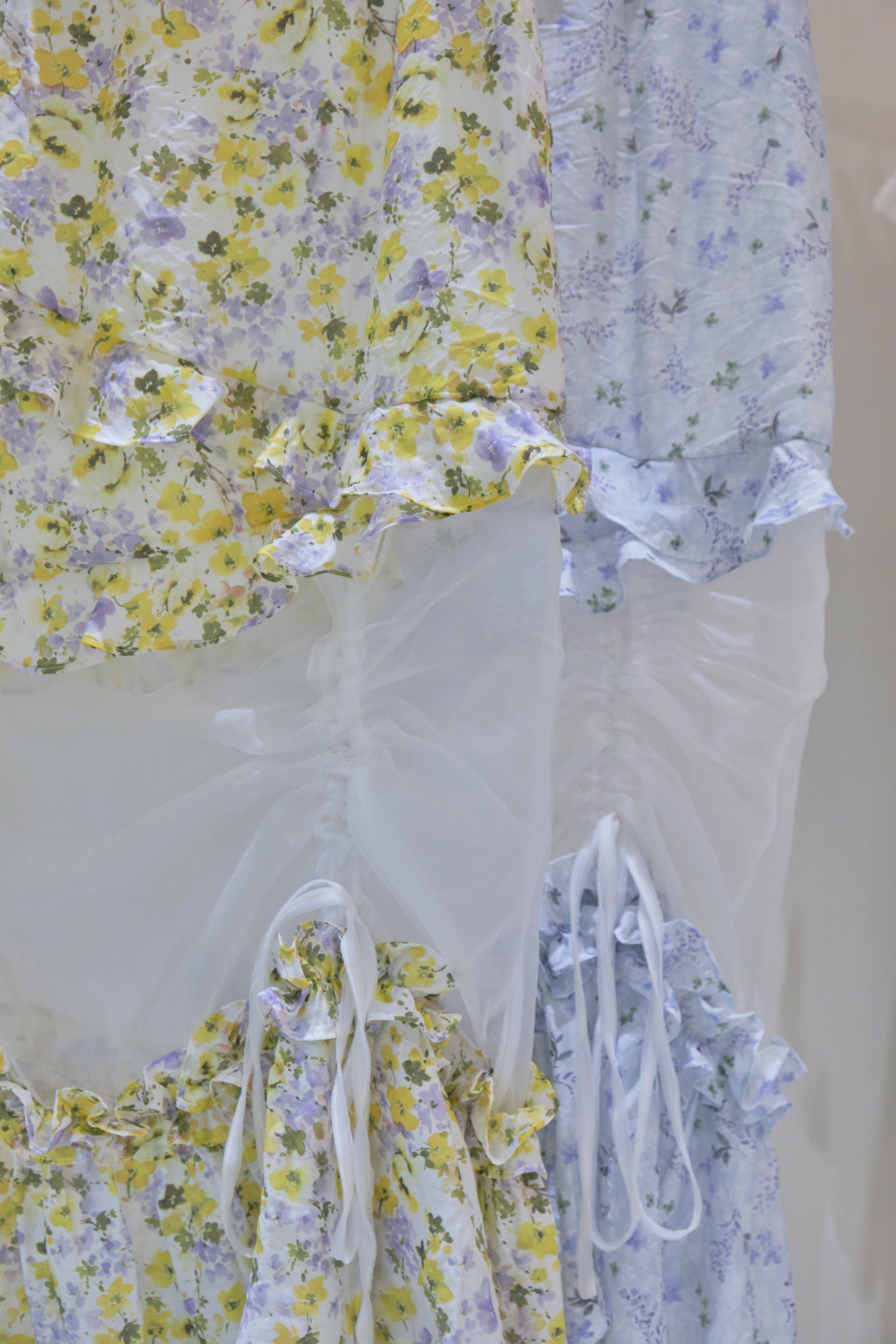 Floral Chiffon 2-Way Mermaid Drawstring Skirt (Yellow/Blue)